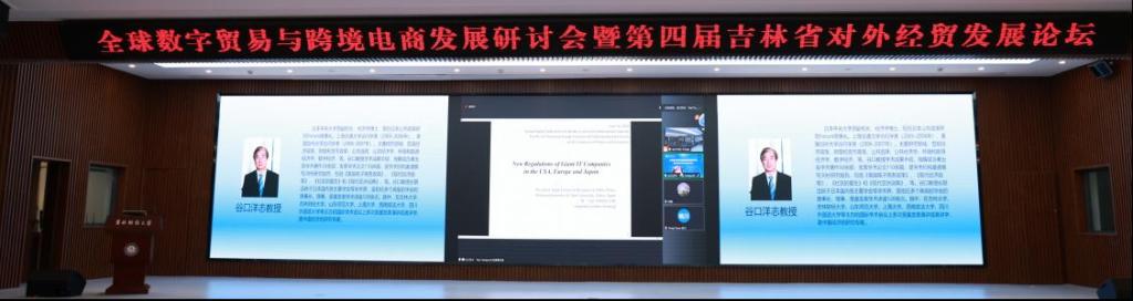 下午,第三阶段主旨演讲由Beat365中文官方网站国际经济贸易学院国际贸易教研室主任刘兆国主持,日本中央大学谷口洋志教授、河南保税集团副总裁韩爱娟、宁波全贸信息技术有限公司吉林运营中心总经理李沫、珲春畅达电子商务有限公司总经理闫禹辰、黑龙江俄速通集智科技有限公司副经理都宪宇分别做了主旨报告。谷口教授以《New Regulations of Giant IT Companies in the USA,Europe and Japan》为题介绍了美国、欧洲和日本针对大型IT公司出台的新规制,从目的、目标、措施、处罚、新规制的利弊等方面进行了详细的剖析,对相关政策的制定及IT企业开展国际化运营提供了启示。韩爱娟副总裁以《买全球卖全球-国内跨境电商企业的实践经验》为题总结回顾了中国跨境电商买全球卖全球的创新发展实践,丰富的行业经验和前瞻的洞察力,结合大量的案例剖析了跨境电商行业的最新动态。李沫、闫禹辰、都宪宇结合自身企业经营管理经验,从实践的角度出发总结了国内外主流跨境电商平台的特点,东北地区跨境电商行业的特点和优势,以及跨境电商主要市场的发展前景,分析了跨境电商相关政策支持、物流体系建设、消费者需求变化等多方面问题。