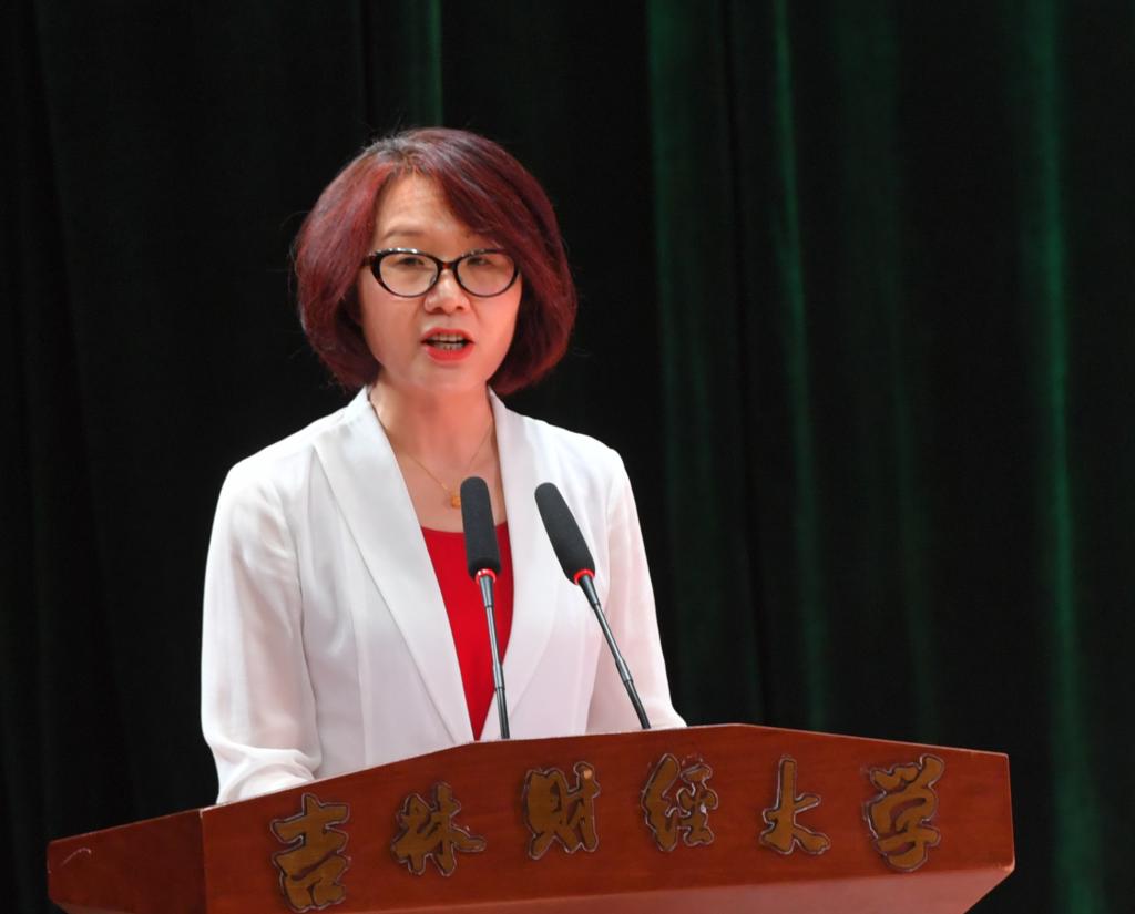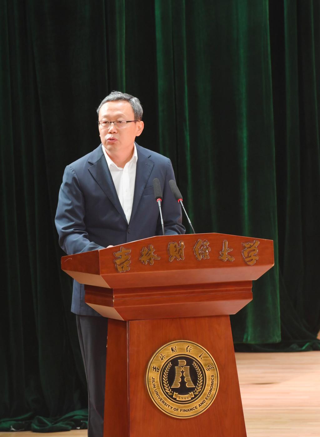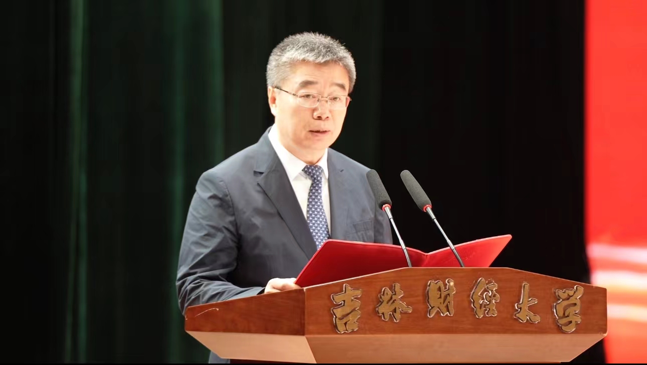 吉林省旅游控股集团有限责任公司党委书记、董事长孟庆凯代表校友发言,他表示,大学的学习和生活经历赋予了同学们以智慧和勇气,面向未来必须自信前行敢于奋斗;他叮嘱毕业生努力打造属于自己的IP,理性选择人生赛道,更要慎终如始,一以贯之;希望更多毕业生“创业奋斗,‘就’在吉林”,为吉林全面振兴贡献吉财学子的青春力量。