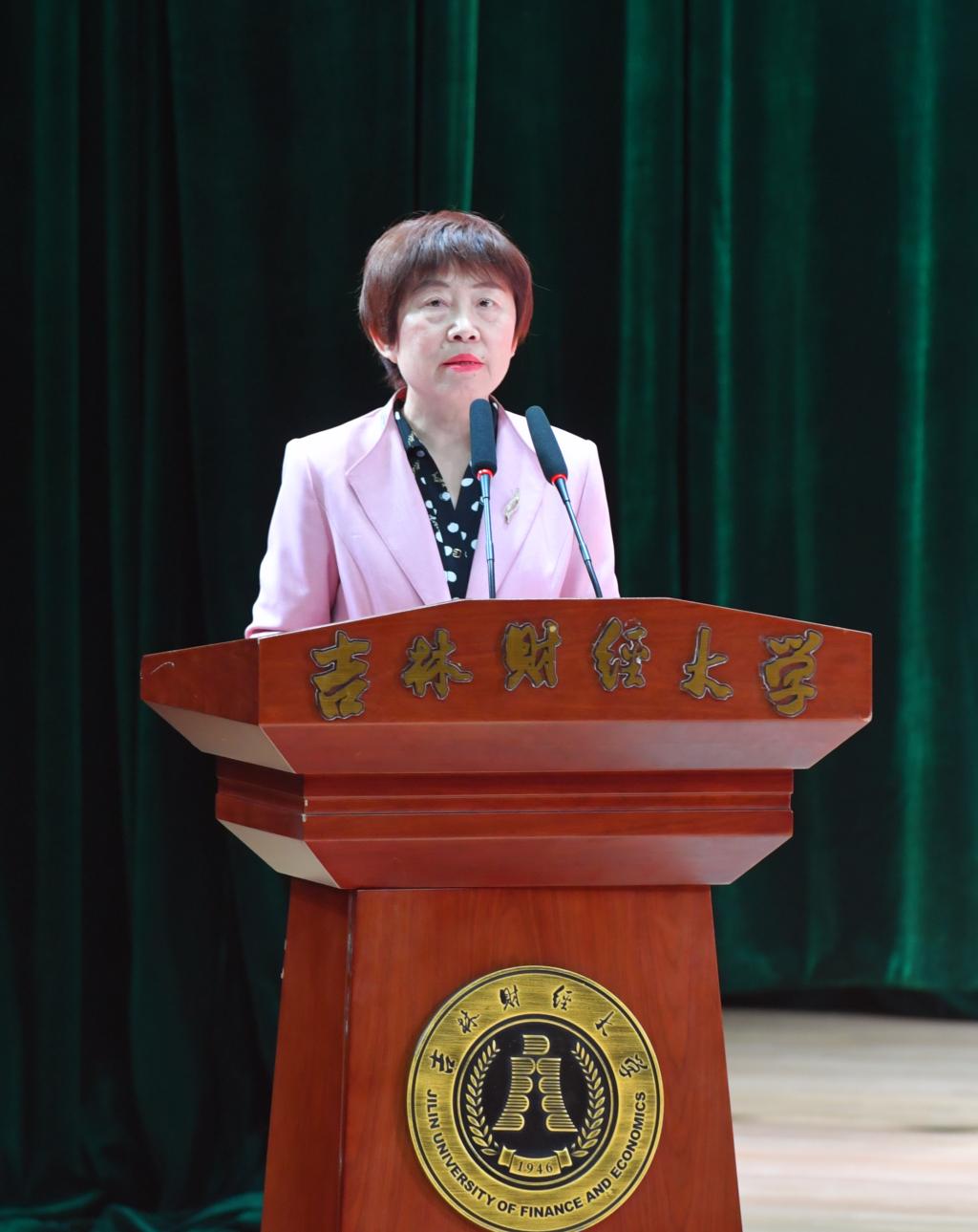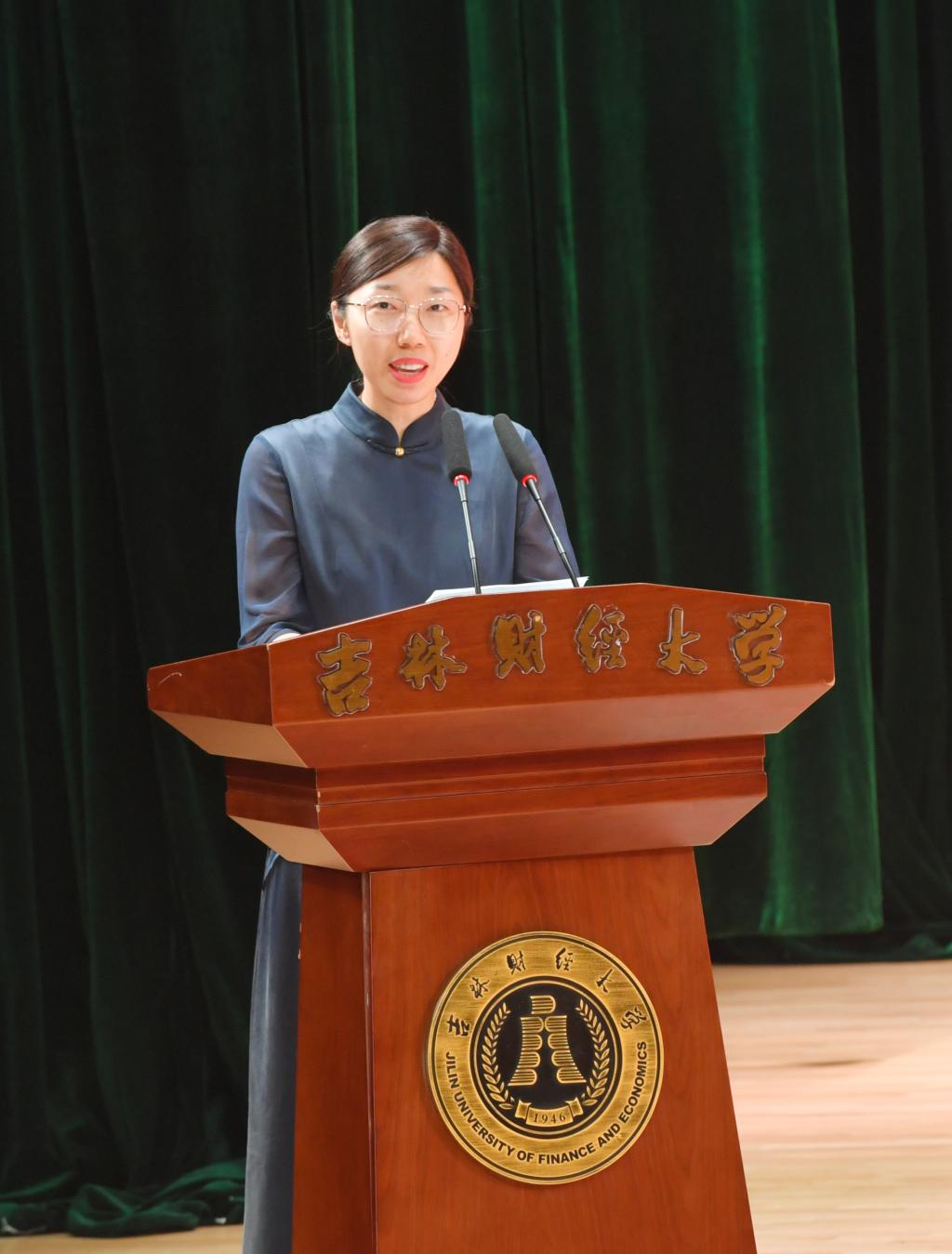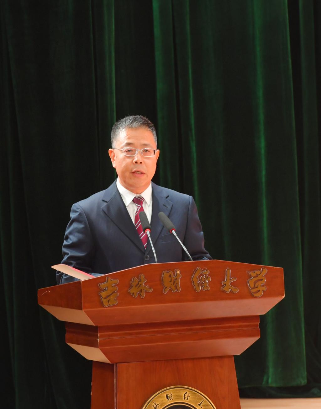吉林省旅游控股集团有限责任公司党委书记、董事长孟庆凯代表校友发言,他表示,大学的学习和生活经历赋予了同学们以智慧和勇气,面向未来必须自信前行敢于奋斗;他叮嘱毕业生努力打造属于自己的IP,理性选择人生赛道,更要慎终如始,一以贯之;希望更多毕业生“创业奋斗,‘就’在吉林”,为吉林全面振兴贡献吉财学子的青春力量。