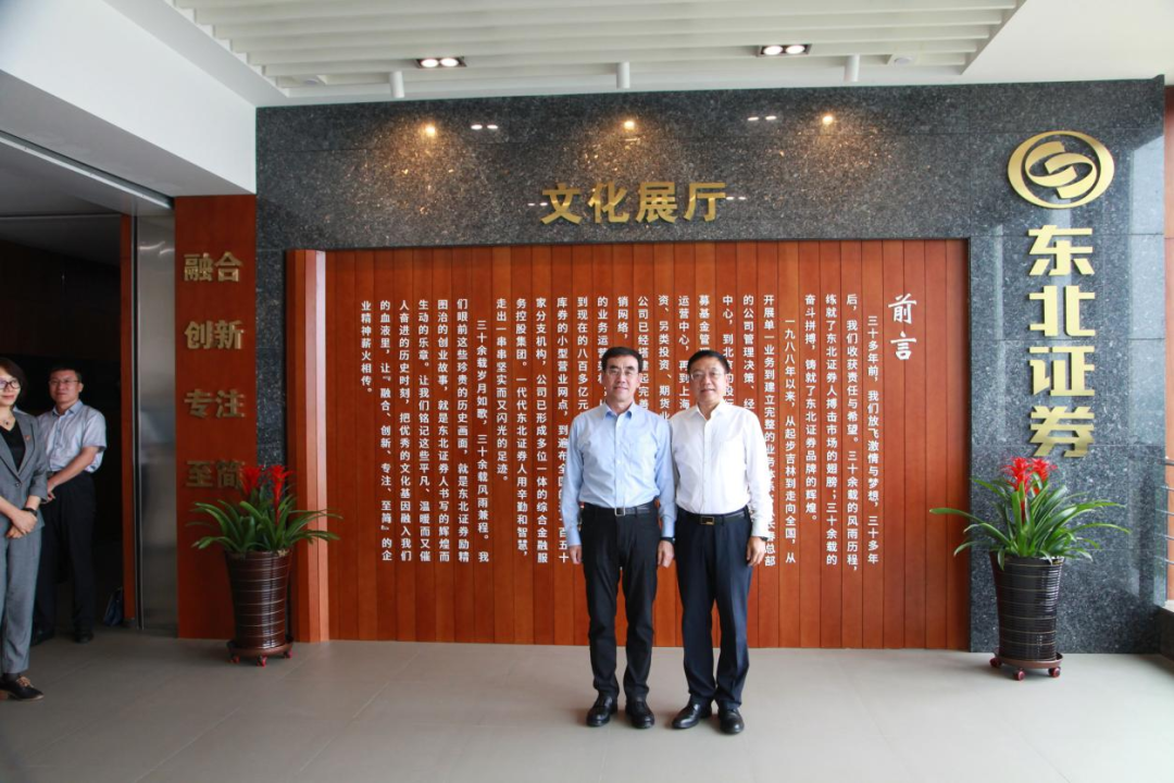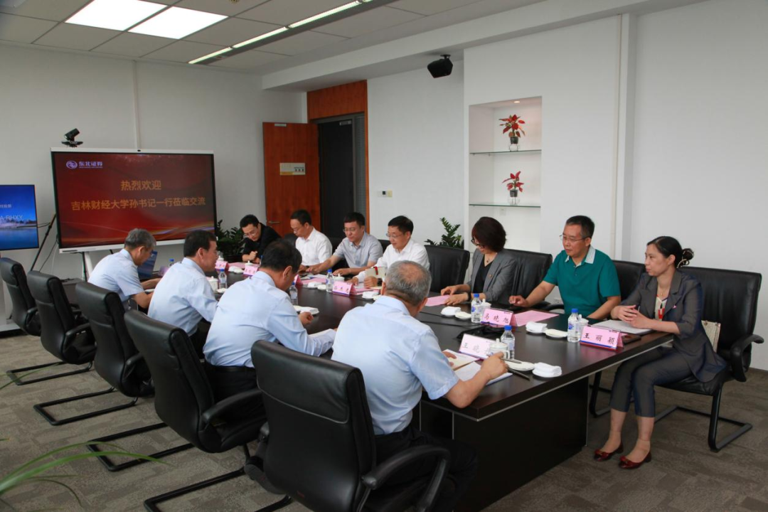 本网讯(金融学院 供稿)为贯彻落实党中央、国务院关于高校毕业生就业工作的决策部署,落实“创业奋斗‘就’在吉林”和高校毕业生留吉就业创业工作部署,对接企业用人需求,拓宽毕业生就业渠道和资源,深化校企合作,7月4日,校党委书记孙杰光带队赴东北证券股份有限公司访企拓岗,副校长马秀颖、研究生学院院长卢相君、国际交流学院党委书记马晓旭、金融学院党委书记王利国、院长王丽颖、副院长马昕田一同前往调研,东北证券股份有限公司董事长李福春,副董事长、总裁何俊岩,副总裁、财务总监王天文,副总裁王晓丹,运营管理部总经理苏健,综合管理部总经理尹航,人力资源部副总经理薛成晶及部分就职校友代表参加座谈并深入交流。
