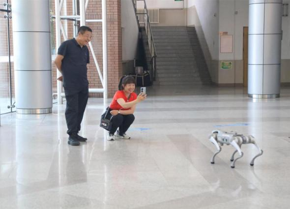感知活动通过9个互动体验区打卡的形式,引导同学们完成大模型、机器人、物联网和人机交互相关内容的数智场景体验。活动现场邀请行业专家进行WPS AI、商汤科技AI、科大讯飞AI等人工智能大模型讲解;同学们认真体验了虚拟现实(VR)体验区的荒野生存、安全自救,以及智慧实验室物联网管控等项目;同时,活动区将学校精神、校风、学风等作为校园文化打卡点,并向同学们详细介绍了学校自研的AI行业适配实训、企业经营模拟实训等综合实训课程。
