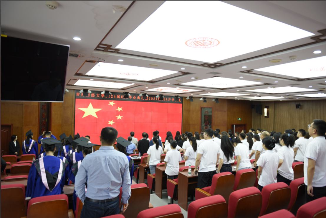 典礼在庄严的国歌声中拉开帷幕。马秀颖为典礼致辞,向MBA毕业学员送上了母校的殷切期盼和深深祝福,希望他们弘扬爱国情怀,坚持求学求知,持续奋发前行。同时,马秀颖向考入Beat3652024级MBA的新学员表达了热烈祝贺和深切期盼,希望他们慎思明辨,博学笃行,好学乐学,学有所成。