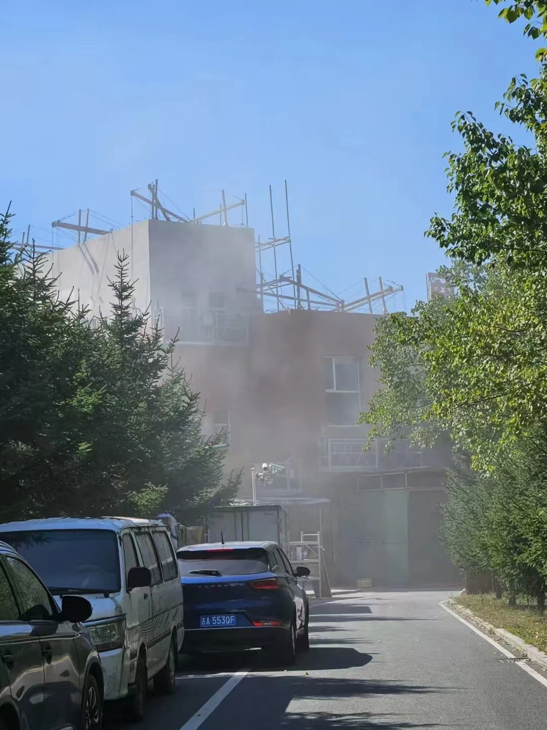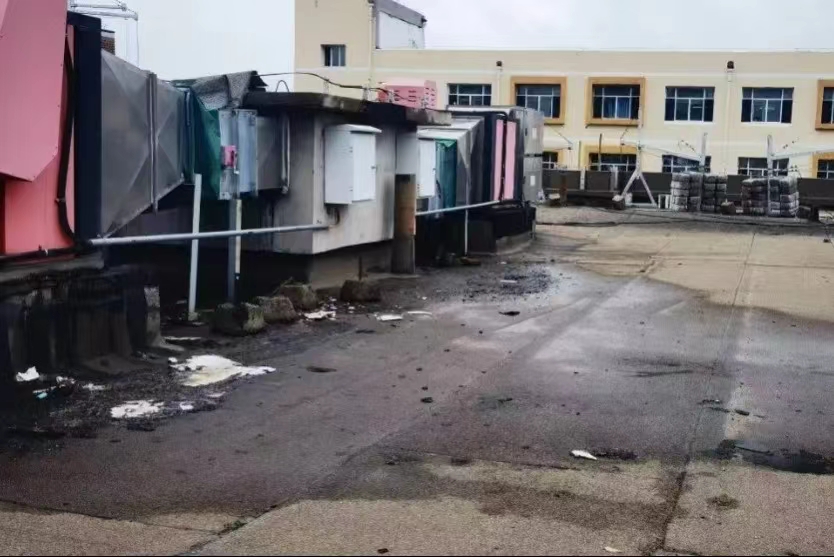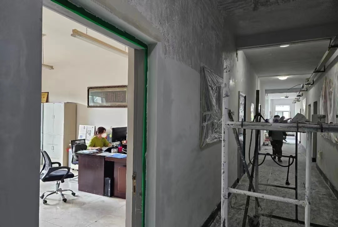 后勤办公楼外墙保温和大白改造工程是最后8月28日学校开学后开工。后勤人上班时,前面的商服中心打磨墙面,后面的浴池也在打磨墙面,后勤楼的走廊里在处理大白,后勤楼中的办公室全方位被粉尘、噪音包围,门窗不能开,风扇不能用,闷热的房间还得戴着口罩,但即使隔着口罩,都能感觉到嗓子里有粉尘的味道!
