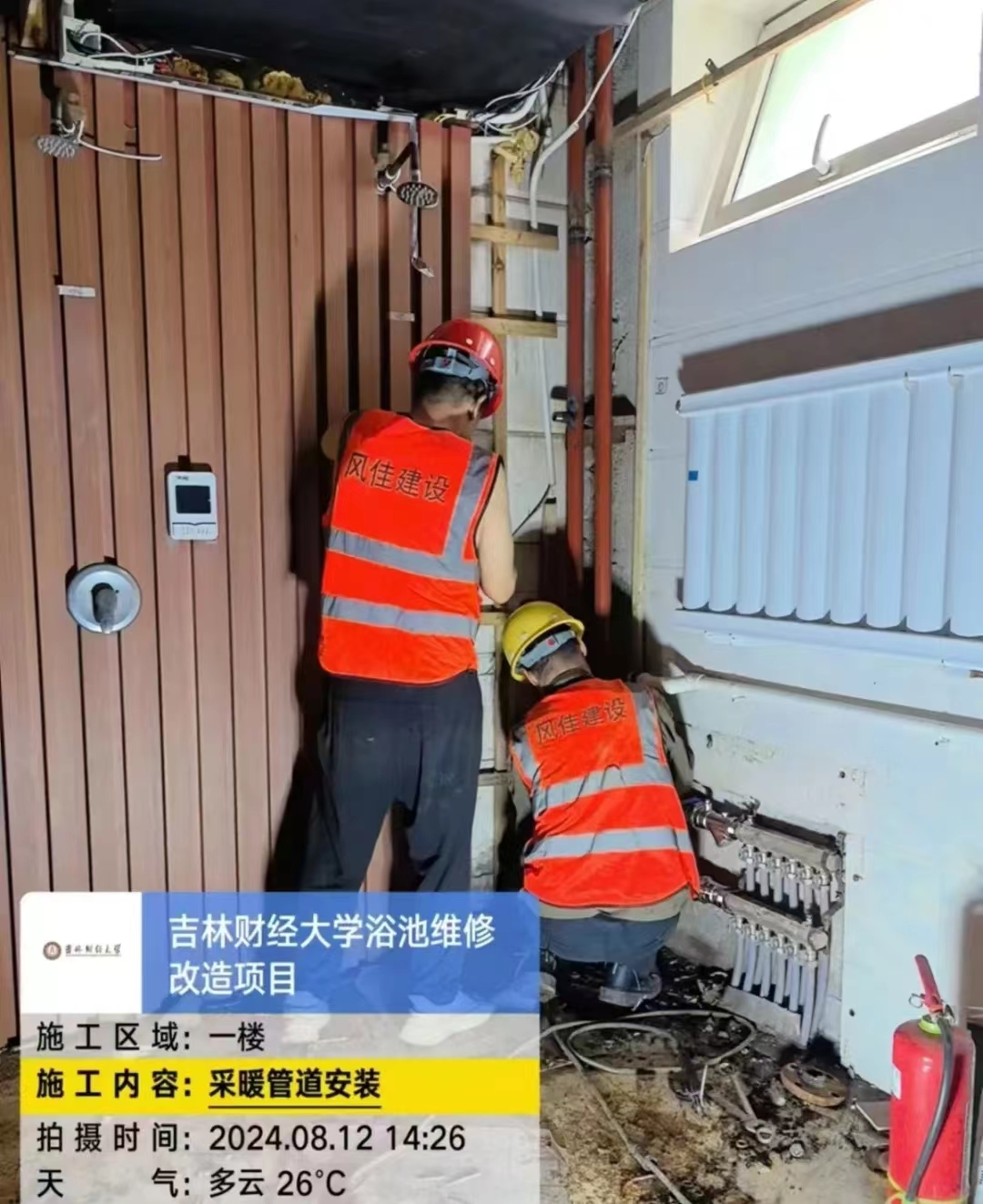 吉财公共大浴池,建于2004年,浴池地沟低、潮湿,管道老化严重,且原模板未拆除,模板腐烂后,铁钉都裸露在外,维修难且有危险。