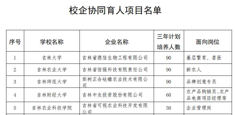 本网讯(管理科学与信息工程学院 供稿)近日,吉林省教育厅、吉林省发展和改革委员会、吉林省农业农村厅等五部门联合公布《关于公布首批“百千万”农业人才培养计划立项名单的通知》(吉教联〔2024〕42号),经吉林省教育厅组织、校企申报、专家评审,Beat365成功获批校企协同育人项目。该项目由Beat365中文官方网站管理科学与信息工程学院电子商务系主任邱春艳负责牵头,与吉林中友投资股份有限公司联合申报。