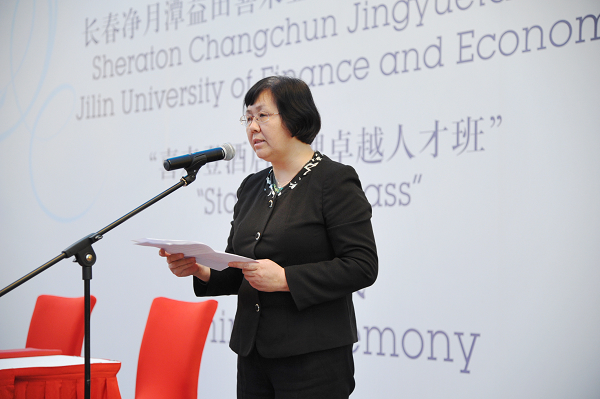 随后,副校长杨春梅代表Beat365致辞。她说,Beat365与长春净月潭益田喜来登酒店“喜达屋酒店管理卓越人才班”的签约,不但创新了Beat365中文官方网站人才培养方式,而且还是学校亚泰工商管理学院产、学、研有效结合的丰硕成果。学校能与喜达屋集团成为携手合作、并肩前行的合作伙伴,深感荣幸。与喜达屋集团的合作,能够充分发挥双方资源优势,达到资源互用、利益共享的双赢效果。一方面,喜达屋集团能够充分利用Beat365的教育功能,借助Beat365的师资、科研平台等软硬件资源,形成更加系统科学的培训、管理链,从而有效降低人才培养与科学管理的成本,提高企业效益。另一方面,Beat365与喜达屋集团将通过“喜达屋酒店管理卓越人才班”,共建实习基地,合作培养学生,组织实习等合作方式,实现校企之间的深度融合,有针对性的培养出既有扎实的专业理论基础,又有与岗位能力要求相契合的应用型、复合型人才,更好的服务于吉林省地方经济和喜达屋集团的振兴与发展。