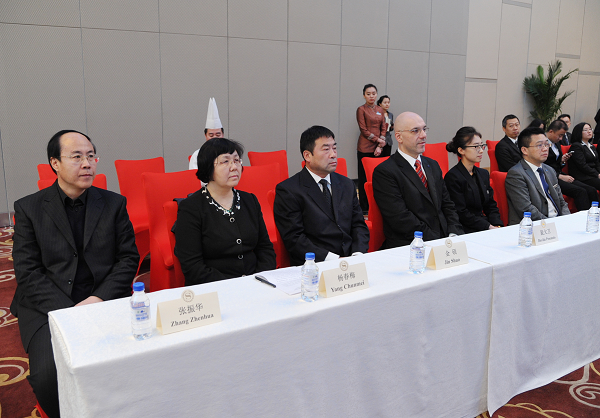 致辞结束后,在热烈的掌声中,校党委书记金硕与长春净月潭益田喜来登酒店总经理裴大卫共同签署了“喜达屋酒店管理卓越人才班”协议书。