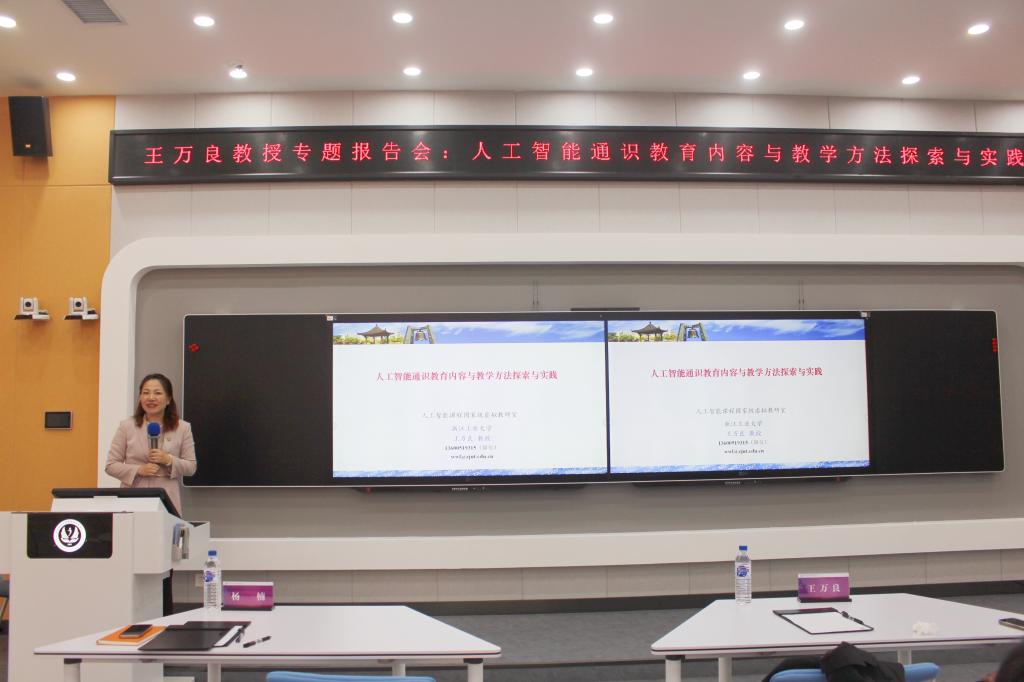 报告会现场气氛热烈,参会教师、研究生就人工智能通识课程建设、教学方法改革等问题与王万良教授进行了深入交流。