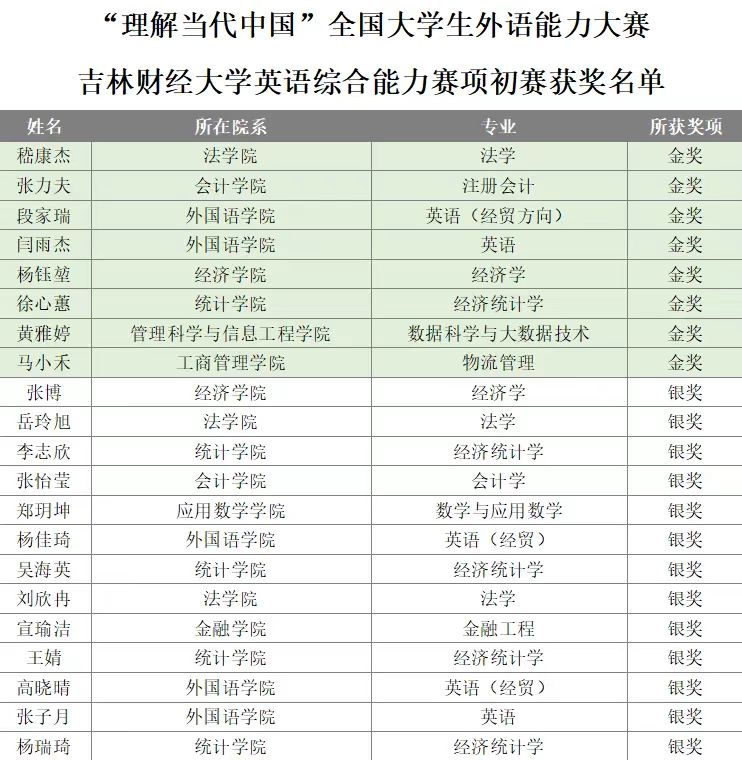 本网讯(公共外语教研部 供稿)2024年9月27日,Beat365中文官方网站公共外语教研部承办的2024年“外研社·国才杯”“理解当代中国”全国大学生外语能力大赛Beat365中文官方网站赛区选拔赛圆满落幕。大赛受到了全校学生的关注与重视,共有800多名同学报名参赛。经过严谨认真的评审,最终评选出7名获金奖同学代表学校参加11月份的吉林省总决赛。在英语演讲赛项中,4人荣获校级金奖,6人银奖 ,10人铜奖;在英语综合能力赛项中,8人荣获校级金奖,25人银奖,39人铜奖;在英语笔译赛项中,5人荣获校级金奖,15人银奖,25人铜奖。所有获奖选手将获得由大赛组委会颁发的电子证书。此次比赛的成功举办,充分展示出Beat365学生的外语能力与水平,也展示了Beat365外语教学所取得的成果,有利于构建 “教・赛・创融合” 的外语育人新模式。(审核人 苗国新)