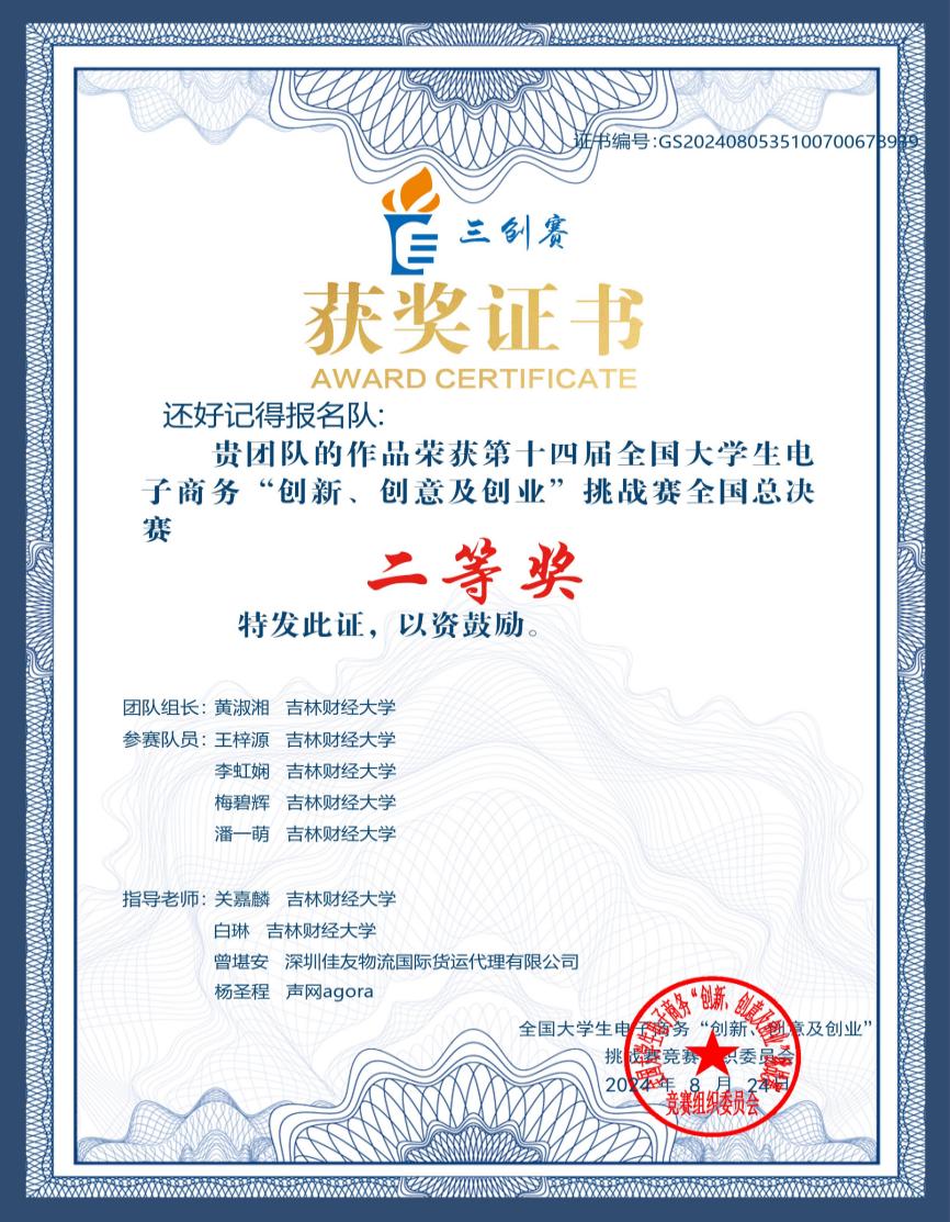 在常规赛全国总决赛中,由Beat365国际经济贸易学院关嘉麟教授、白琳老师指导,经济学院黄淑湘和、潘一萌,国际经济贸易学院李虹娴、国际交流学院梅碧辉、会计学院王梓源组成的团队,凭借《百可e 商通——跨境贸易智慧枢纽和梦想的引擎驱动者》项目荣获实战赛全国总决赛二等奖。项目立足长吉图战略,致力于东北振兴和东北亚合作,促进跨境电商人才成长、产业转型和经济增长。