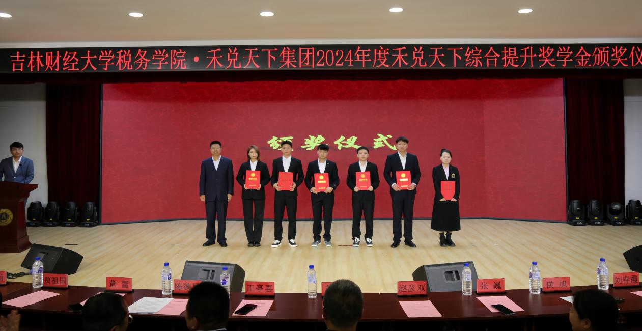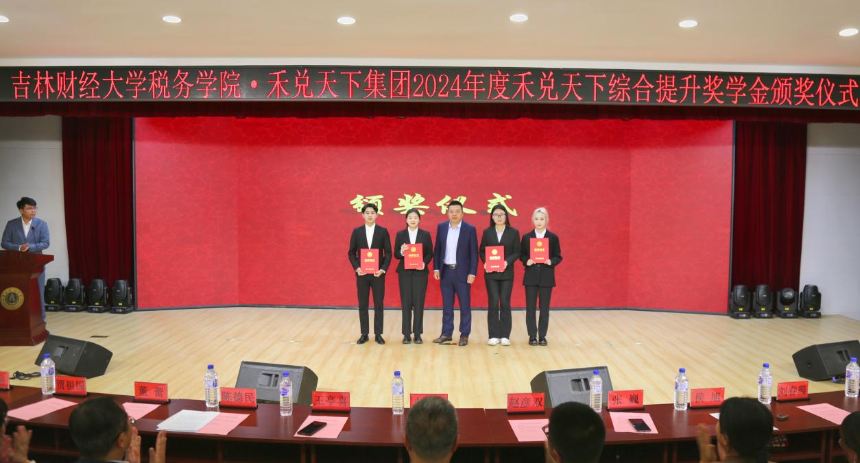 本网讯(税务学院 供稿)10月9日,税务学院举办2024年“禾兑天下”综合提升奖学金颁奖仪式。校党委副书记刘鹤参加了仪式并为获奖学生颁奖。“禾兑天下”综合提升奖学金创立者、税务学院99级校友、禾兑天下集团董事长王亭喜参加了颁奖仪式。
