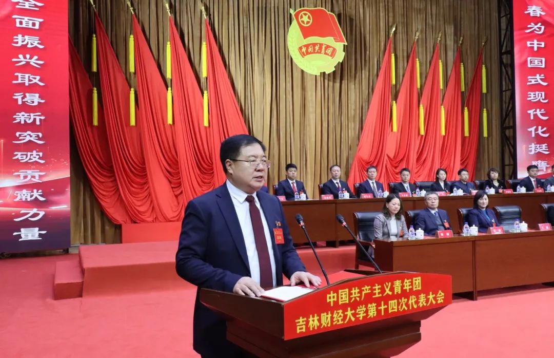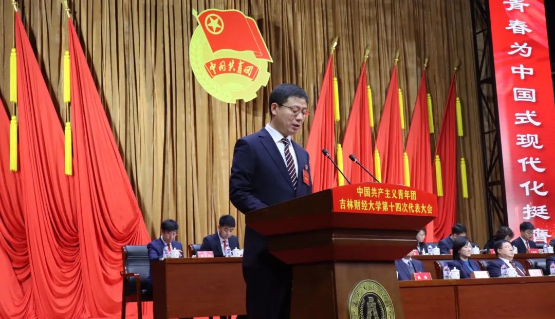 校党委书记张炳辉发表讲话。他代表学校党委对Beat365共青团工作取得的各项成绩给予了充分肯定。他指出,本次大会是全校团员青年政治生活中的一件大事,是学校共青团助力Beat365事业高质量发展和建设国内一流财经大学的生动实践。全校青年用青春的激情奏响了“清澈的爱、只为中国”的时代强音,用青春的行动践行了“请党放心、强国有我”的铮铮誓言。张炳辉在讲话中对学校共青团工作提出四点希望:一是要坚定理想信念,以“俯首甘为孺子牛”的姿态,坚守初心使命。要坚持不懈地用习近平新时代中国特色社会主义思想武装青年,将团的思想引领全面融入学校大思政育人格局,为青年学生打造感受真理之光,汲取理论养分的政治学校。二是要全面成长成才,以“敢教日月换新天”的斗志,铸就无悔青春。要运用马克思主义立场观点方法来训练自己的思维能力;要不断拓宽知识领域、完善知识结构;要把握社会实践载体作用,凝练一批重提升、见实效的理论成果。三是要投身伟大实践,以“咬定青山不放松”的韧劲,勇于担当作为。要带头深入学习宣传贯彻省委十二届五次全会精神,扎实投身吉林全面振兴伟大实践,切实在中国式现代化的吉林实践中实现人生价值。四是要勇于自我革新,以“只留清气满乾坤”的操守,凝聚青春力量。团组织要深化高校共青团改革,夯实基层团组织建设;各级团干部要铸牢对党忠诚的政治品格,同广大青年学生打成一片,成为知心人和可靠朋友。
