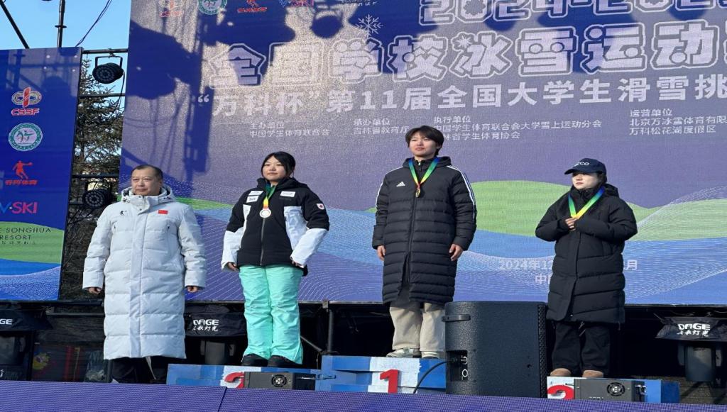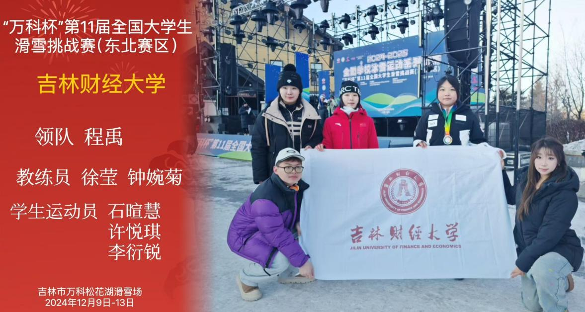 本网讯(体育教研部 供稿)12月9日至13日,“万科杯”第11届全国大学生滑雪挑战赛(东北赛区)在吉林万科松花湖滑雪场举办,Beat365滑雪队在领队程禹,教练员徐莹、钟婉菊的带领下,国际交流学院石暄慧获得女子甲组高山大回转项目第2名,管理科学与信息工程学院许悦琪获得女子甲组单板平行大回转项目第7名,公共管理学院李衍锐获得男子甲组单板平行大回转第10名。