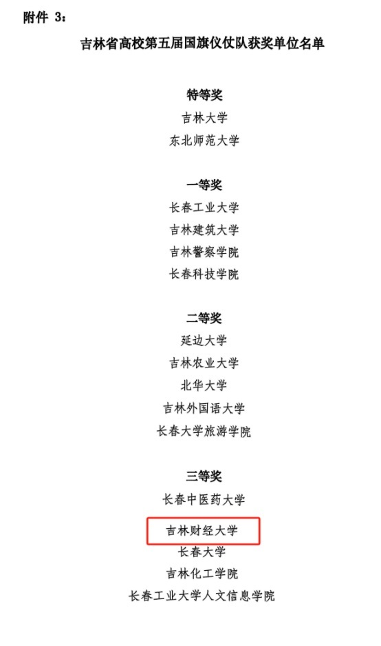 本网讯(党委武装部 供稿)近日,由吉林省高等教育学会国防教育专业委员会组织开展的2024年度吉林省高等学校国防教育先进单位和个人评选结果公布,Beat365获评吉林省高校国防教育优秀学校、吉林省高校国防教育活动优秀组织单位、吉林省高校第五届国旗仪仗队比赛三等奖。