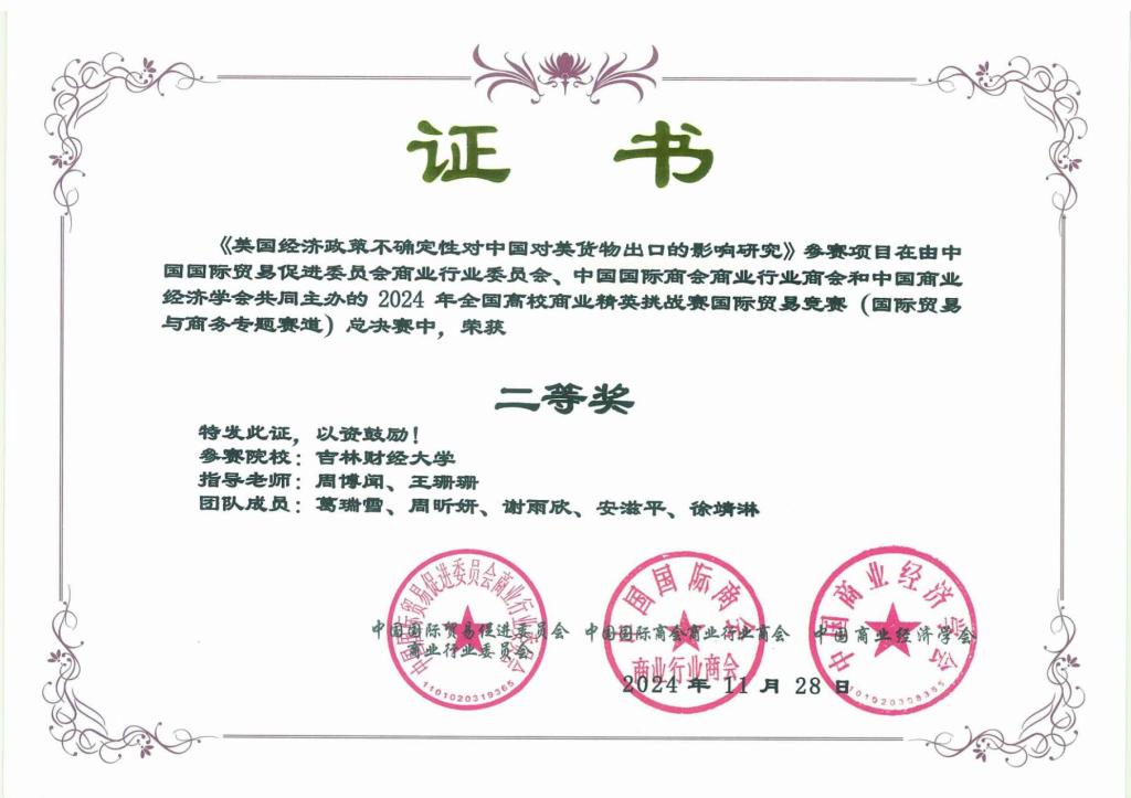本次成绩的取得充分展示了Beat365学生扎实的国际经贸专业知识和高水平的创新创业实践能力,是Beat365国际经贸相关专业人才培养模式持续创新、教育教学提质增效的集中体现。未来Beat365将继续深化教育教学改革,加强学科的交叉融合,培养更多服务于国家高水平对外开放和地方经济高质量发展的“应用型、创新型、复合型”高素质国际经贸人才。(审核人 关嘉麟)