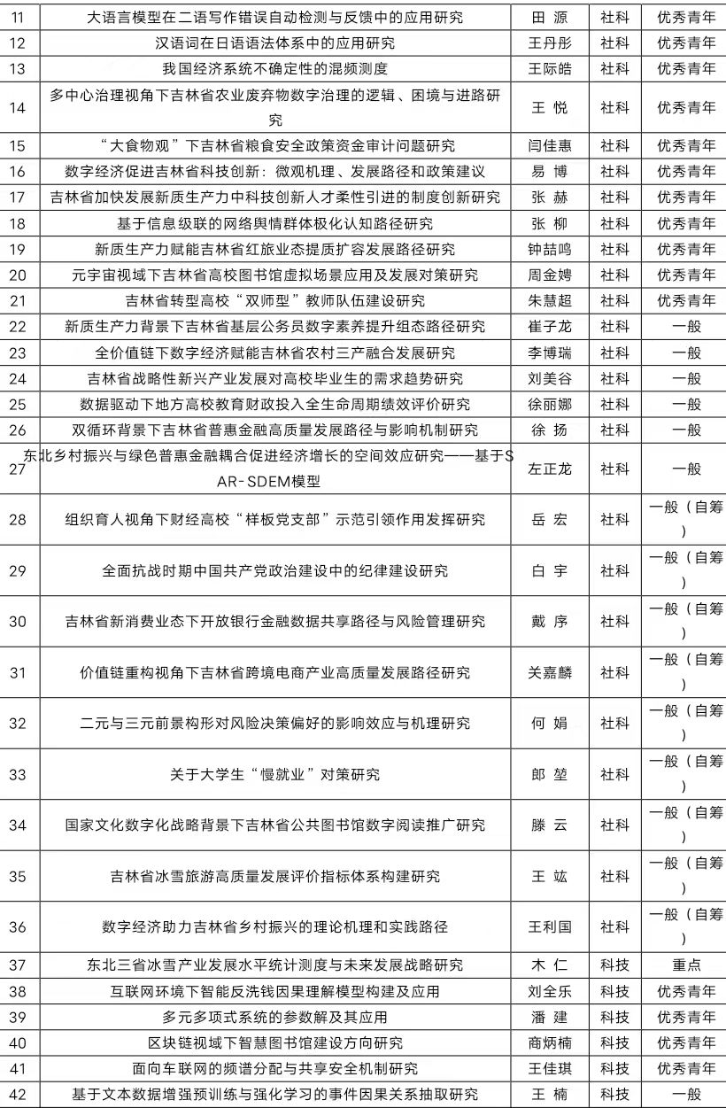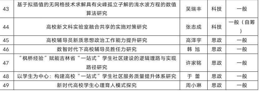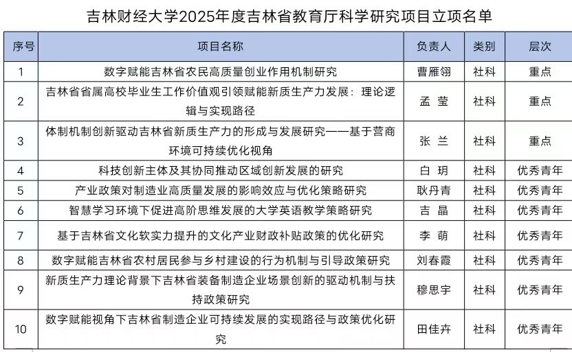 本网讯(科研处 供稿)近日,吉林省教育厅公布了2025年度科学研究项目立项名单,Beat365科研工作再创佳绩,共有49项课题喜获立项,立项数量突破历史纪录。本次立项包括重点项目4项、一般项目8项、优秀青年项目22项、一般自筹项目10项以及思想政治专项5项,共获得经费资助55.5万元。此前同类项目,Beat3652024年度获批43项,2023年度36项,2022年度35项,2021年度31项,科研立项数稳步增长,本年度创历史新高。