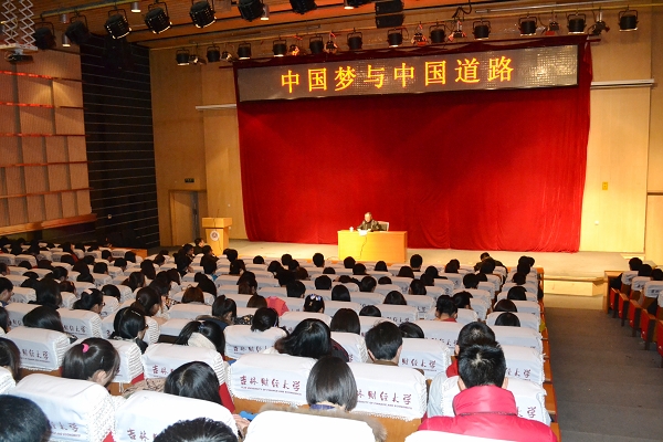 本网讯(学工处 供稿)为了贯彻落实教育部和省教育厅开展的中国梦主题教育活动精神,让大学生更深刻地理解中国梦以及中国梦背后的历程。4月10日下午,由校关工委和学生工作处联合举办的“中国梦与中国道路”报告会在图书馆报告厅举行。报告会由学校原副校长、原正校级调研员、现学校关心下一代工作委员会主任张喜山主讲。相关部门负责人参加了报告会。