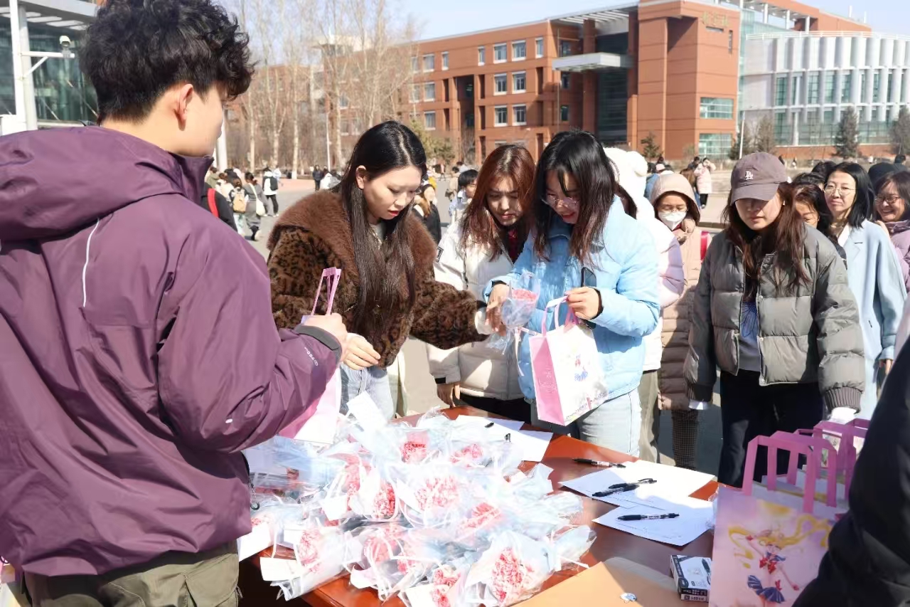 本次系列活动由学校党委精心谋划,以“党建+妇建”的融合模式,聚焦思想引领、健康运动、文化展示和暖心关怀四大主题,吸引千余名教职工热情参与。2月28日至3月5日举办的是“党的二十大精神和妇女权益保障”专题有奖竞答活动,全体女教职工以100%的参与率彰显了“以学促行、以行践学”的进取精神;3月8日开始的“健康生活、快乐工作”线上健步走活动,已吸引500余名教职工报名参与,大家通过微信小程序进行“云端打卡”,实现连续7天完成每日5000步的运动目标,既养成了科学健身的良好习惯,又在温情互动中凝聚了团结奋进的集体主义情怀;3月7日推出的“巾帼关爱三重奏”温情行动,以三重温暖献礼女教职工:一是校园四地同步开展“鲜花赠巾帼”派送活动,600余束承载着节日祝福的鲜花逐一送到女教职工手中;二是在德实广场开展以“庆三八妇女节,展巾帼风采韵”为主题的“甜暖入心田”美食派发活动,600份定制蛋糕在欢声笑语的节日温情中传递着吉财的甜蜜关怀;三是推出“云端送祝福”活动,以《致全校女教职工慰问信》的形式送上学校党委对全体女教职工的殷殷祝福。