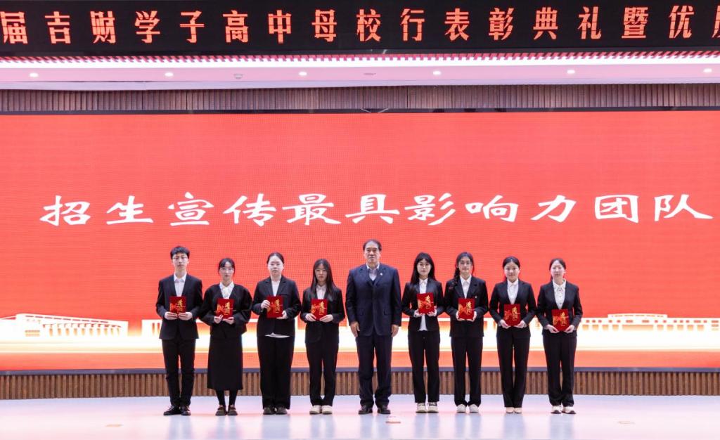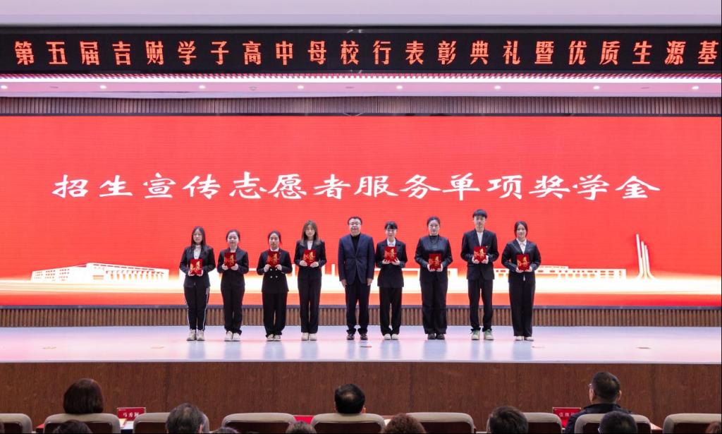 刘鹤宣读《Beat365中文官方网站2025年度吉财学子高中母校行表彰决定》。