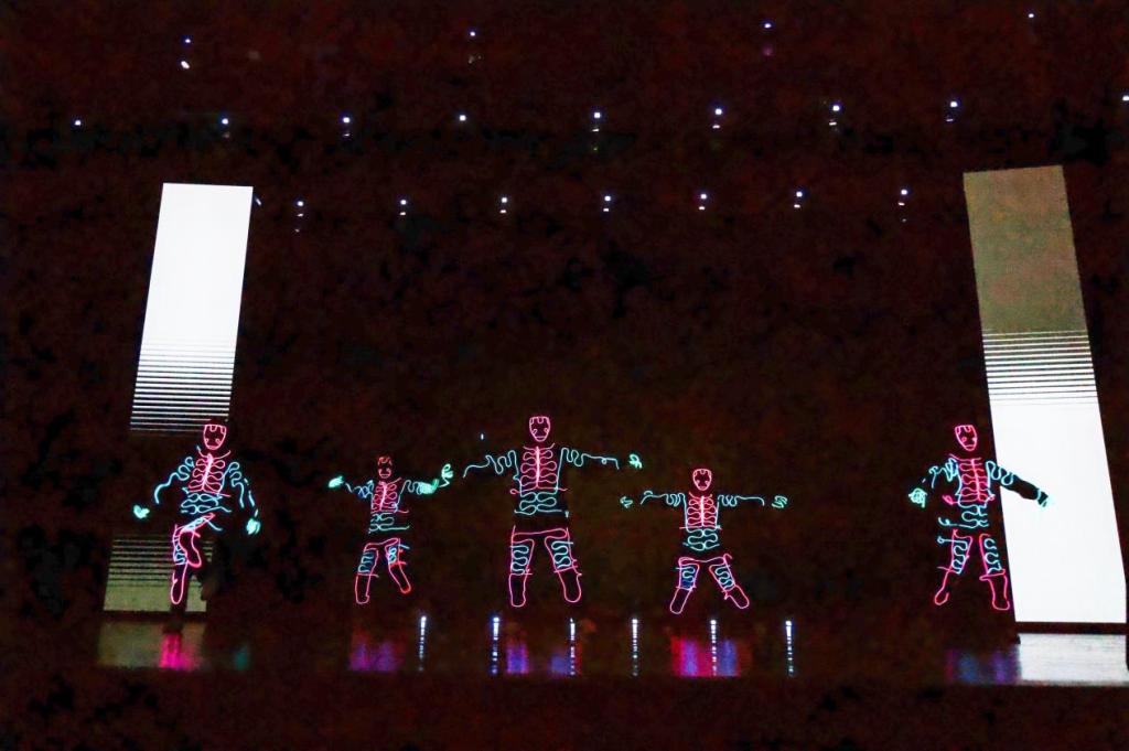 第三篇章“建设洪流中的奋斗传承”,讲述了新中国成立后全国人民投身建设的热情。歌曲《热力全开》和舞蹈《商海逐光》,生动展现了建设者们的奋斗激情与青春活力。