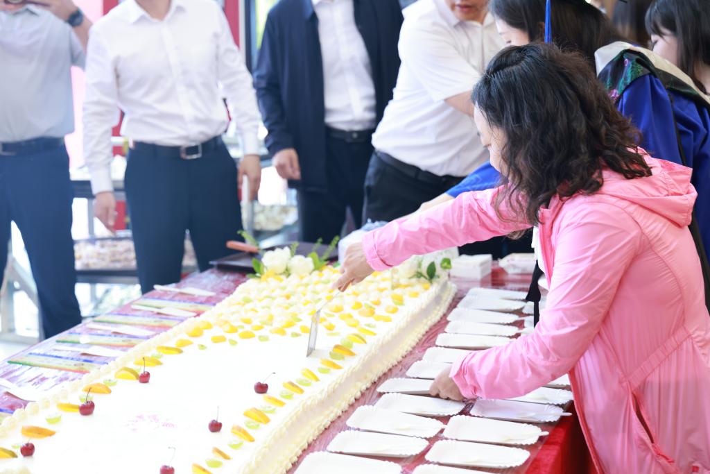 典礼仪式结束后,学校在二食堂为毕业生送上毕业蛋糕、饺子、水果和伴手礼,祝福毕业学子展翅高飞、未来可期。