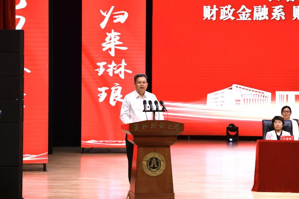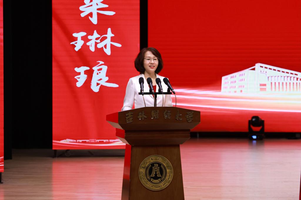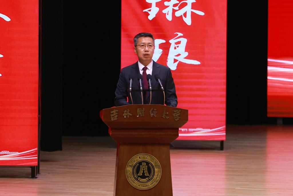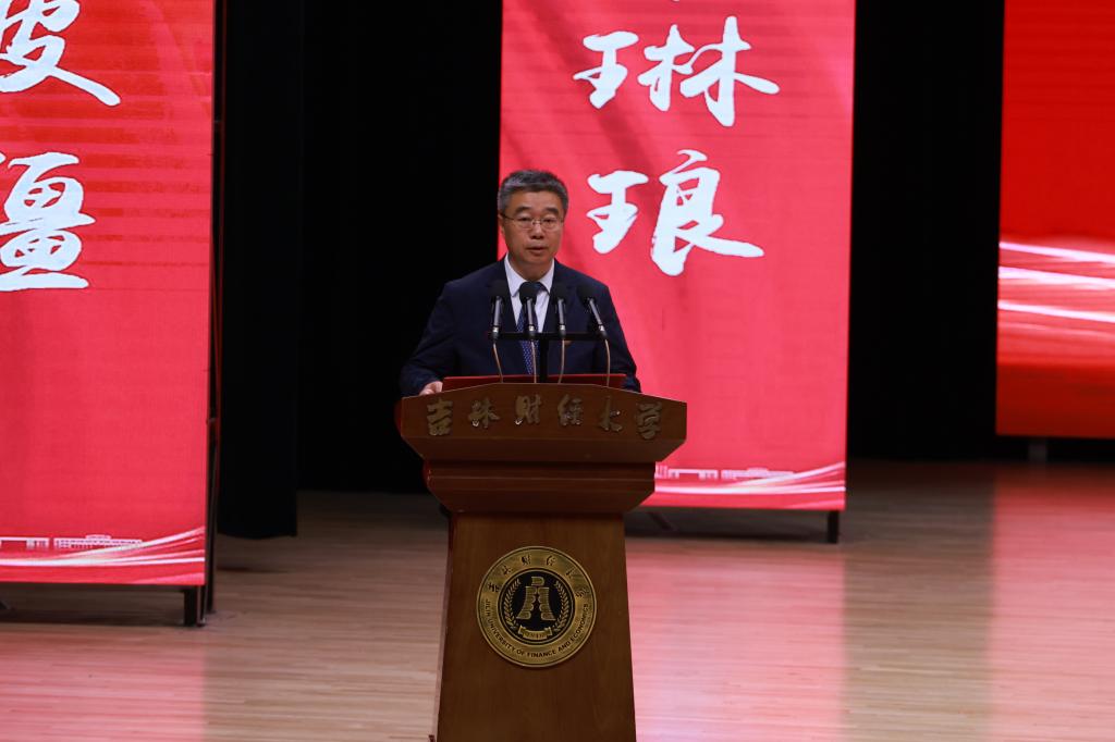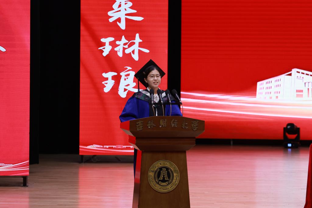教师代表、统计学院李国荣教授表示在东北振兴战略20周年的新起点上,同学们要紧扣吉林现代化经济体系建设,扎根家乡服务发展,在推动全面振兴中实现人生价值。同时以五个“成长锦囊”寄语毕业生:一具有终身学习的能力,二培养跨界融合的视野,三拥有创新求变的勇气,四立足脚踏实地的作风,五胸怀家国情怀的担当!
