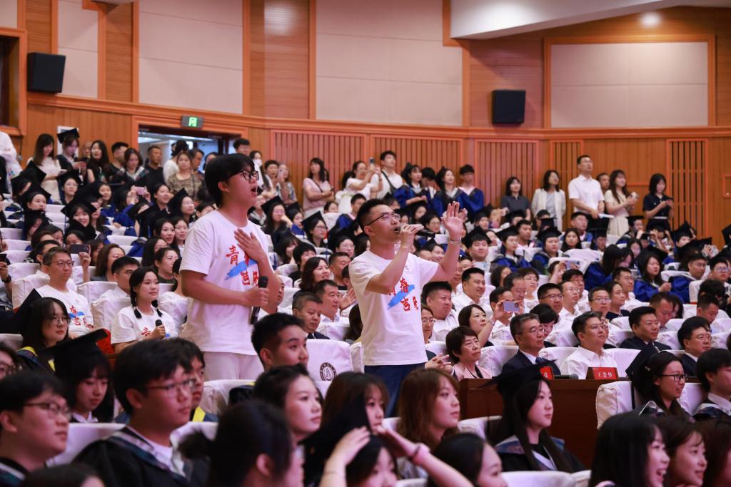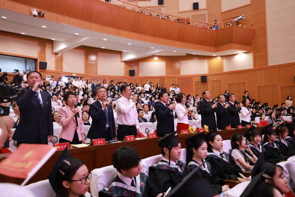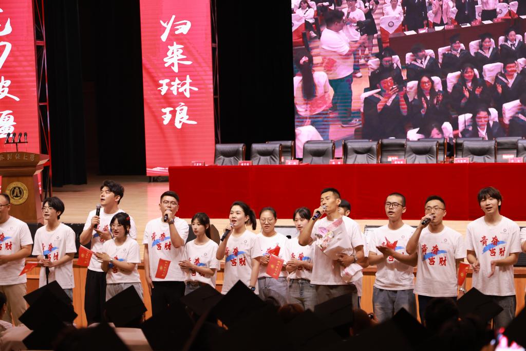 典礼仪式开始前,学校领导、教师代表与学生共同献唱歌曲,党委书记张炳辉深情献唱并寄语2025届毕业生。