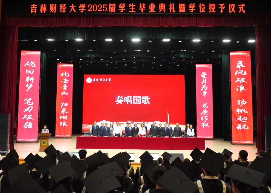 鲜衣怒马少年时,不负韶华行且知。随着2025届学生毕业典礼暨学位授予仪式的结束,全体2025届毕业生满怀爱国之心、报国之志、强国之能,以矢志奋斗作为青春底色,奋力书写时代征程,以吉财青年的风貌,在推进中国式现代化的宽广舞台上绽放属于吉财学子的青春光彩。
