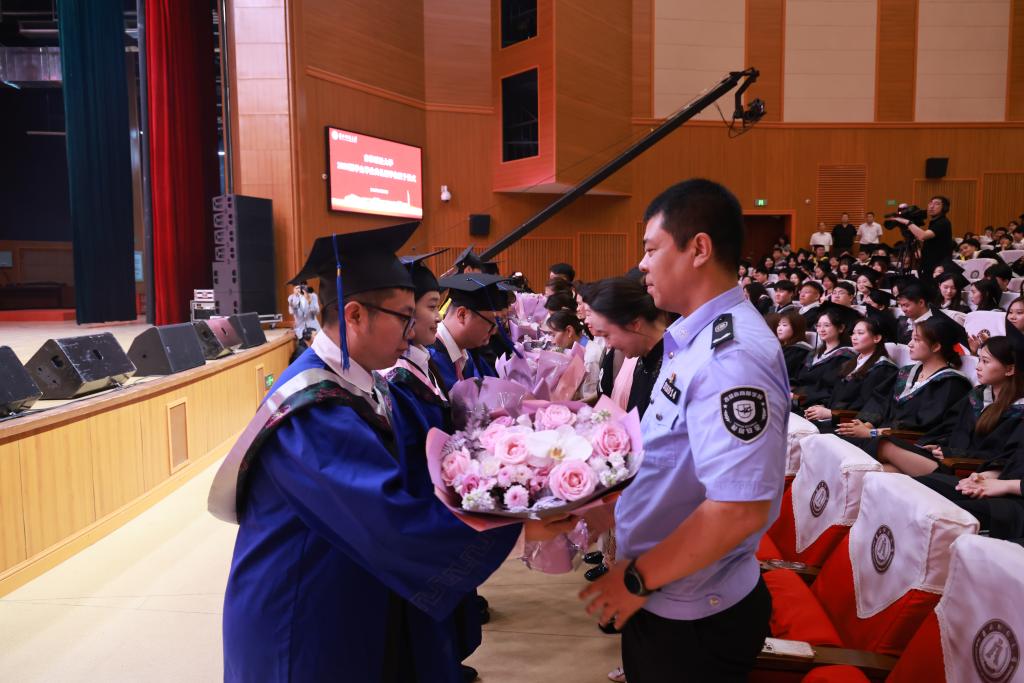 毕业生代表为最可爱的校园守护者们敬献了鲜花。