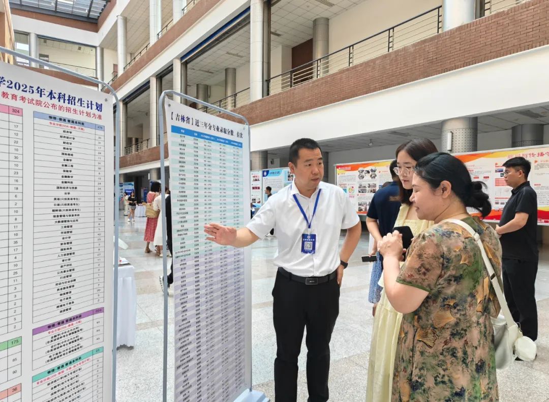 本网讯(招生就业处 供稿)6月26日,学校举办2025年校园开放日活动。党委副书记、校长马秀颖,党委副书记刘鹤,纪委书记、监察专员丁庆东在活动现场向家长和考生介绍了学校的发展建设状况,并结合高考改革背景和生涯规划教育理论,对学校的招生政策进行了全面解读,为家长和考生们答疑解惑。
