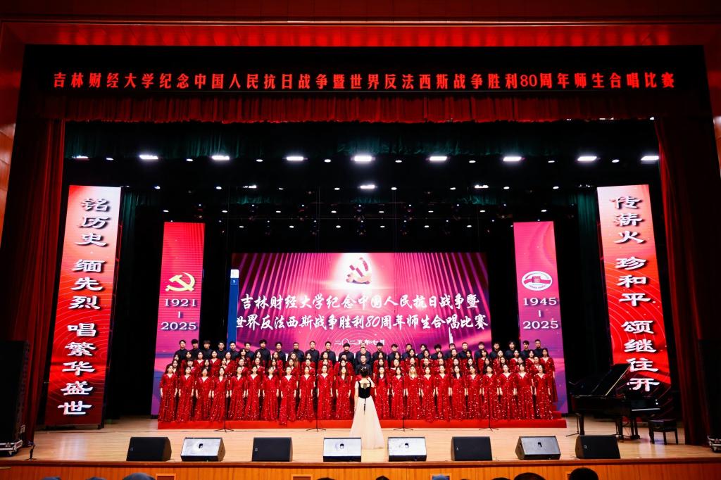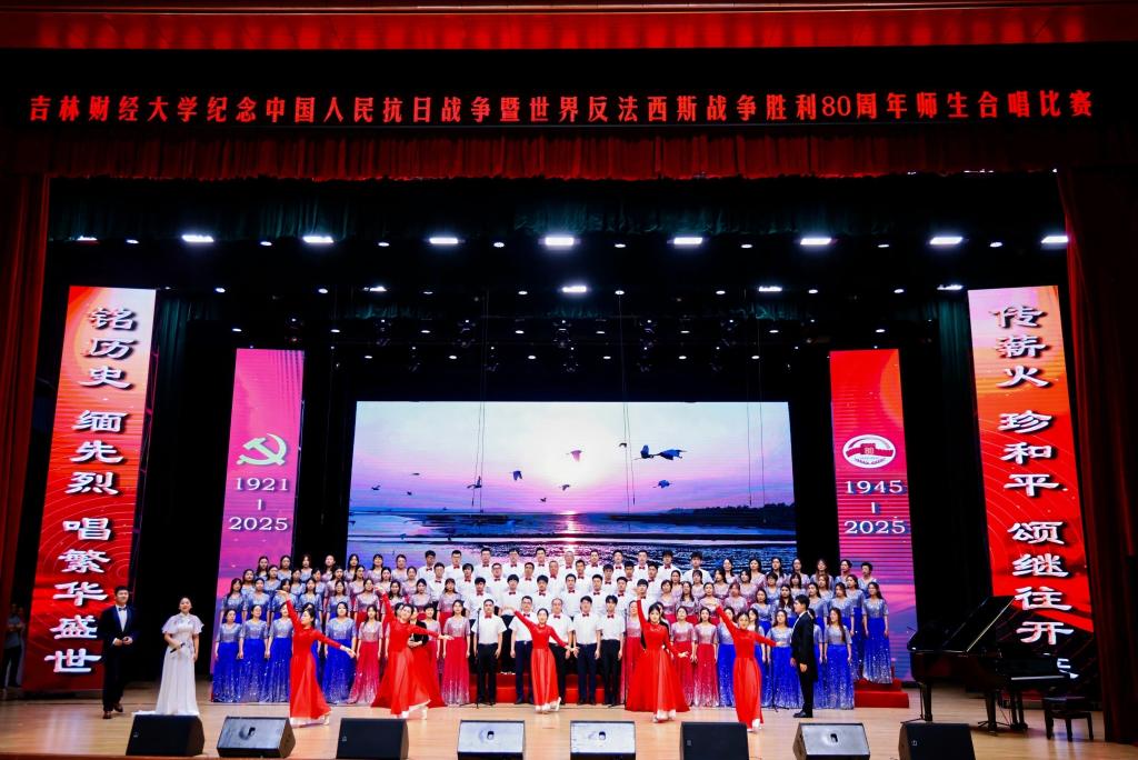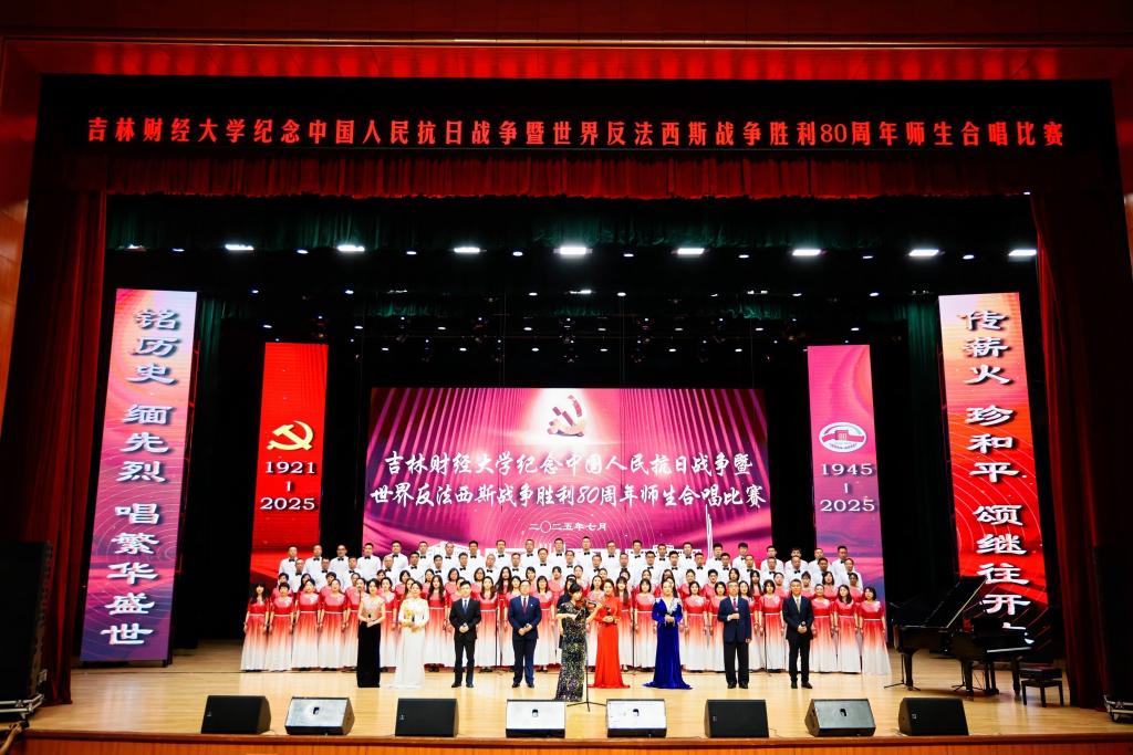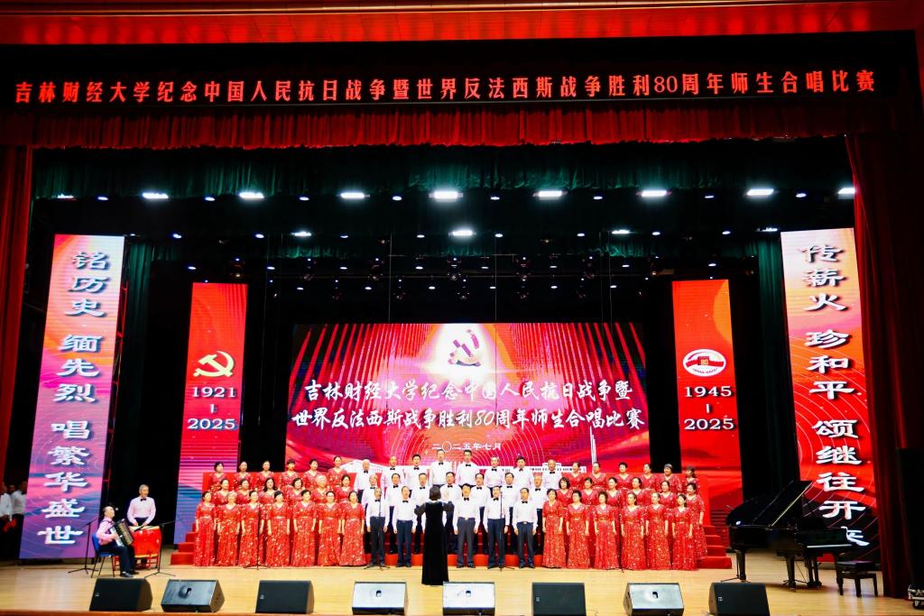 本网讯(校工会 供稿)为纪念中国人民抗日战争暨世界反法西斯战争胜利80周年,热烈庆祝中国共产党成立104周年,7月1日下午,学校在多功能学术中心举行师生合唱比赛,以歌声弘扬抗战精神与中国共产党人精神谱系,引领师生坚定理想信念、凝聚奋进力量,以昂扬姿态展现新时代吉财人的精神风貌,为学校高质量发展注入澎湃动能。