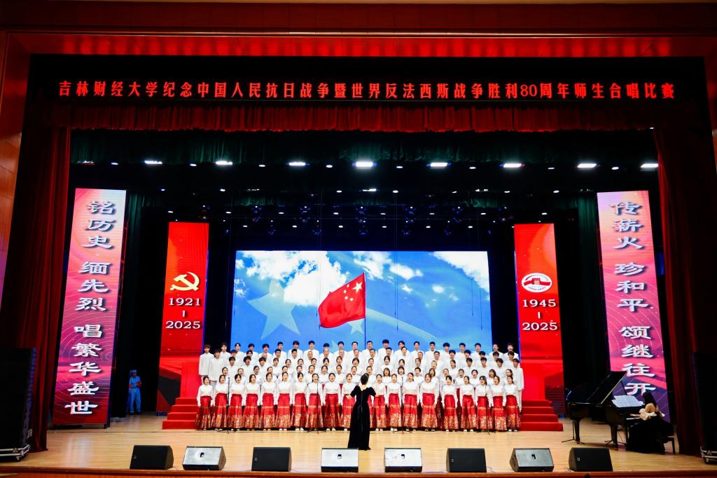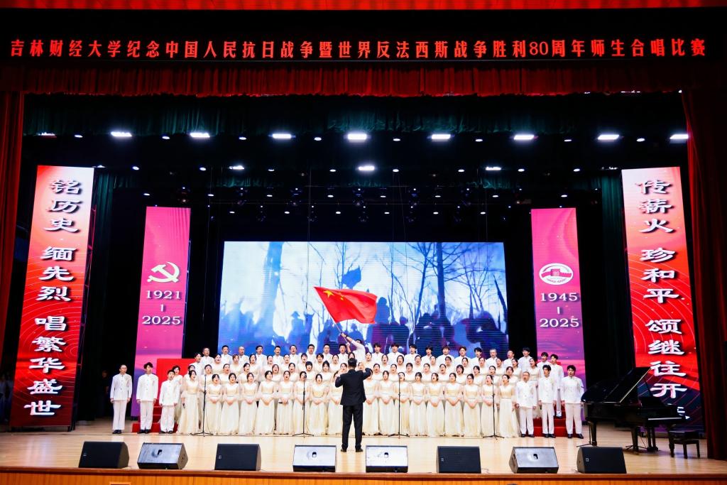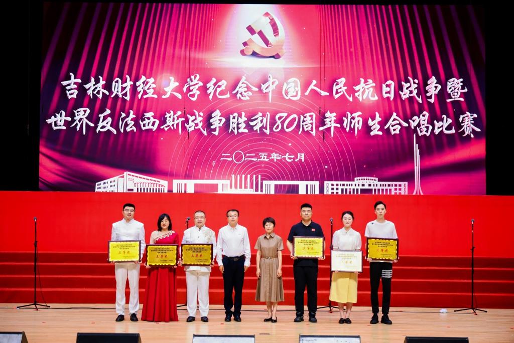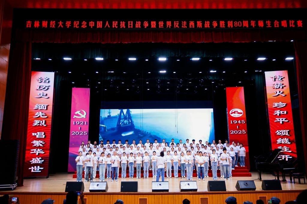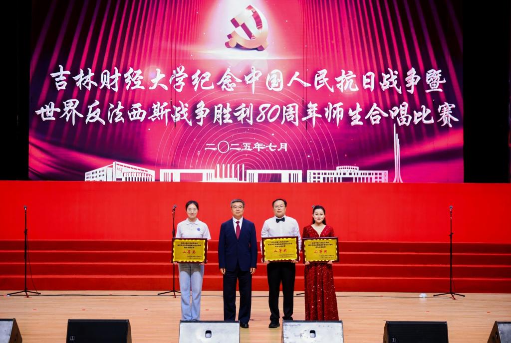 本网讯(校工会 供稿)为纪念中国人民抗日战争暨世界反法西斯战争胜利80周年,热烈庆祝中国共产党成立104周年,7月1日下午,学校在多功能学术中心举行师生合唱比赛,以歌声弘扬抗战精神与中国共产党人精神谱系,引领师生坚定理想信念、凝聚奋进力量,以昂扬姿态展现新时代吉财人的精神风貌,为学校高质量发展注入澎湃动能。