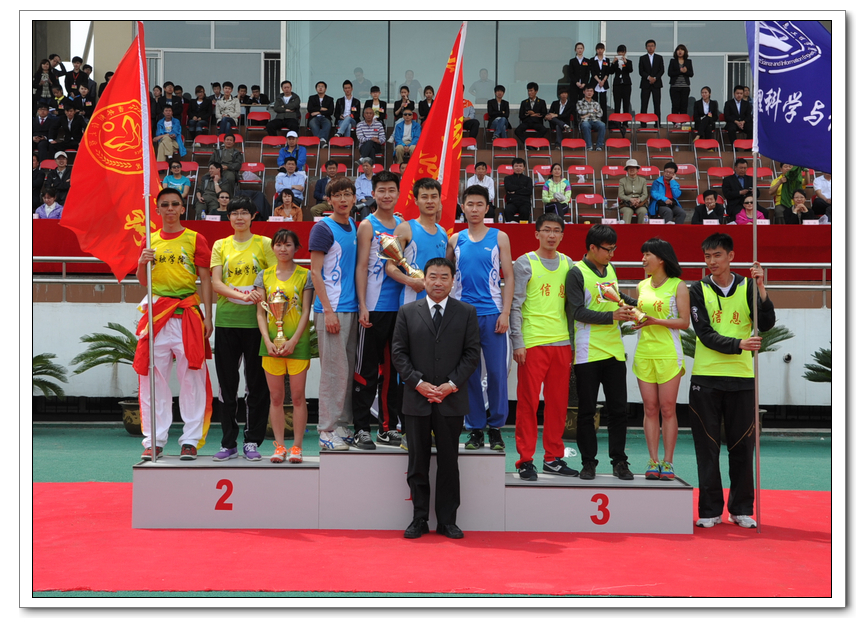 5月18日上午11:30,运动会闭幕式正式开始。校党委书记金硕、校党委副书记兼副校长郝中华、校纪委书记王时刚、副校长张越杰分别为获奖代表队颁发了奖杯。
