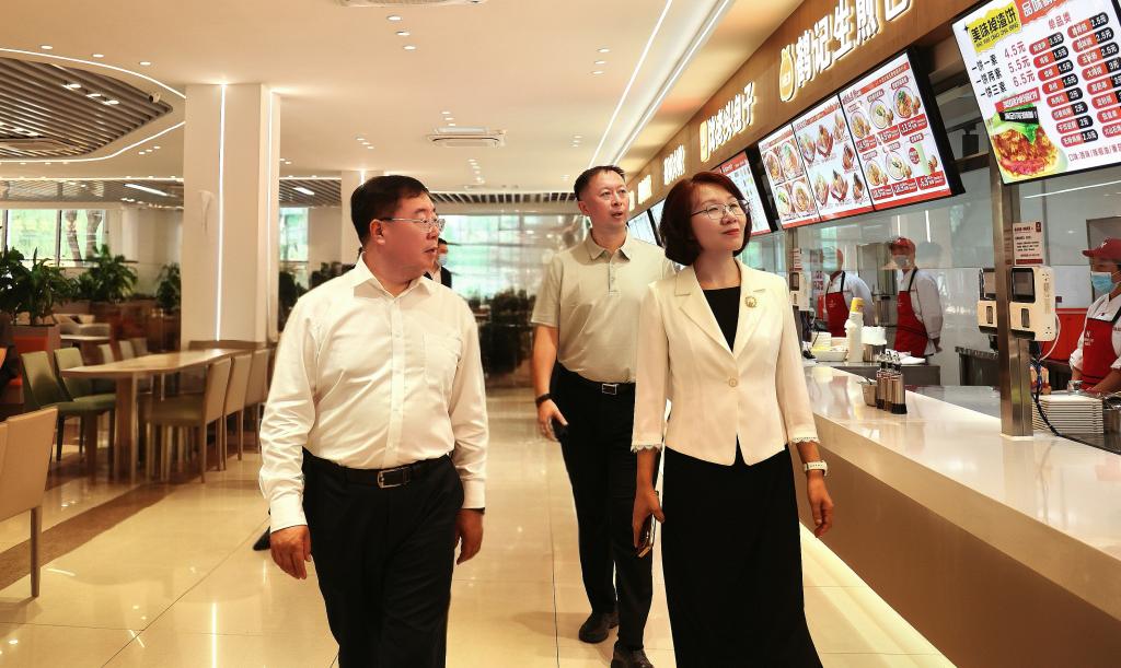 在焕然一新的二食堂,校领导一行重点检查了环境卫生、食材采购储存、食品加工流程和商品价格质量等,反复叮嘱后勤工作人员,必须严把食品安全关,稳定物价、保障供应,让学生吃得放心、吃得开心。