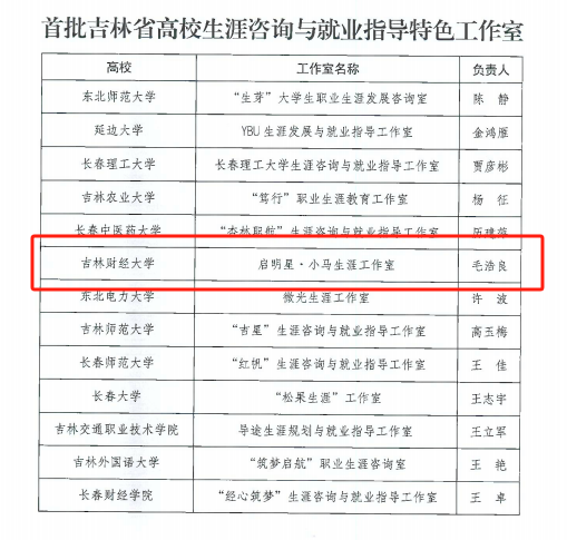 本网讯(招生就业处 供稿)近日,吉林省教育厅公布首批吉林省高校生涯咨询与就业指导特色工作室评选结果,经专家调研与综合评估,Beat365金融学院“启明星·小马生涯工作室”成功获评。