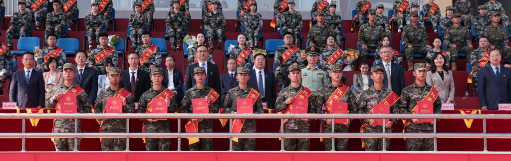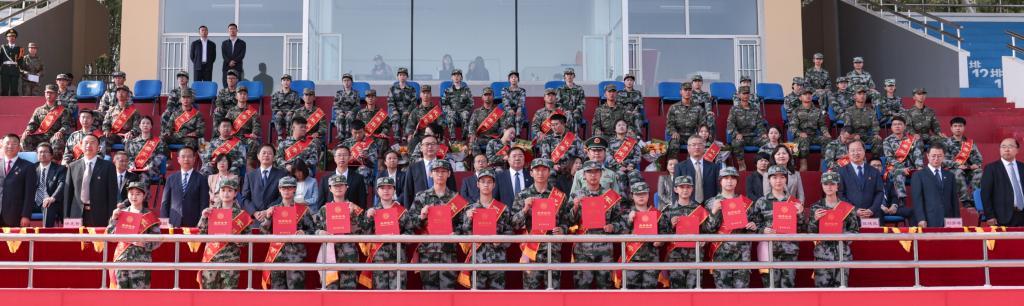 学生工作处副处长徐瑞妍宣读表彰决定。学校领导、部队领导及各学院书记共同为受表彰的教官、辅导员以及学生代表颁发荣誉证书,并向优秀寝室授予锦旗。