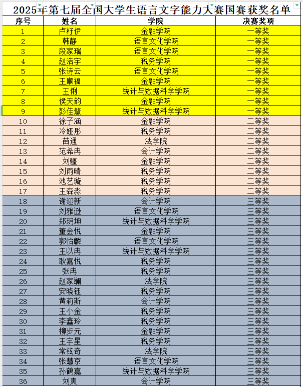 本网讯(语言文化学院 供稿)近日,第七届全国大学生语言文字能力大赛决赛结果揭晓,Beat365学生荣获国赛三等奖以上奖项36人,省赛三等奖以上奖项70人,获奖层次与数量实现历史性突破;语言文化学院教师朱春雨被授予“优秀命题老师”荣誉称号。