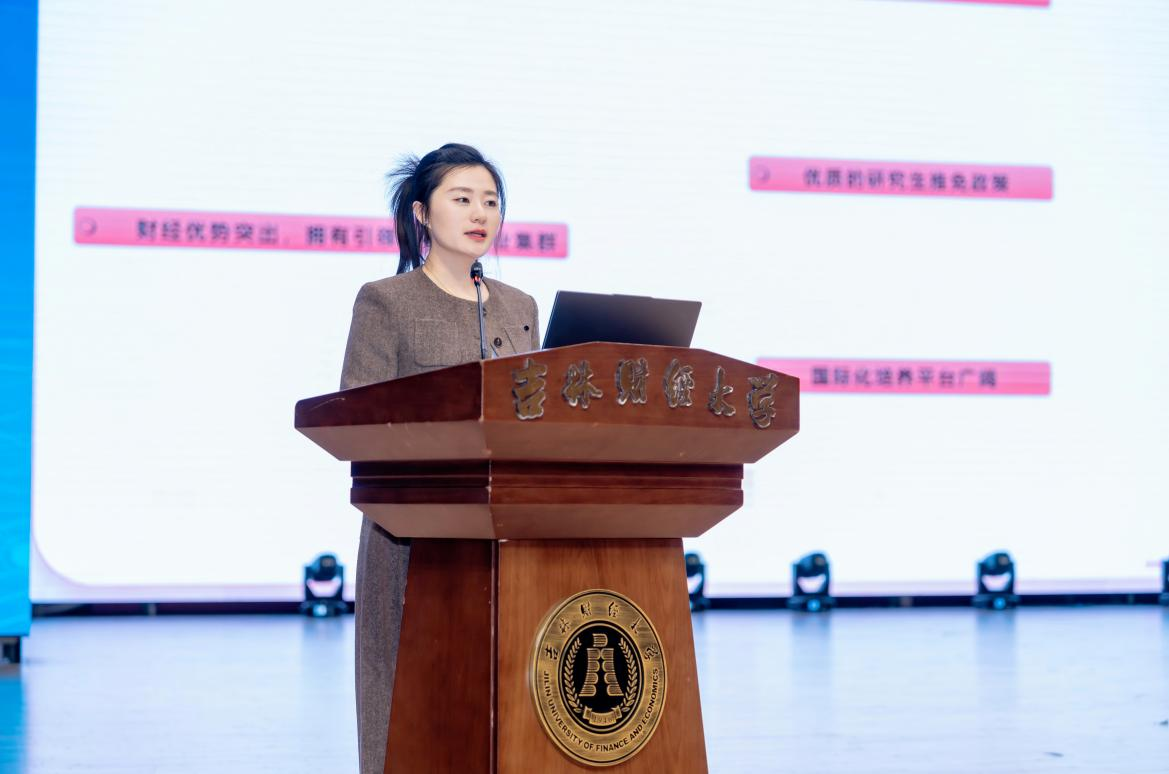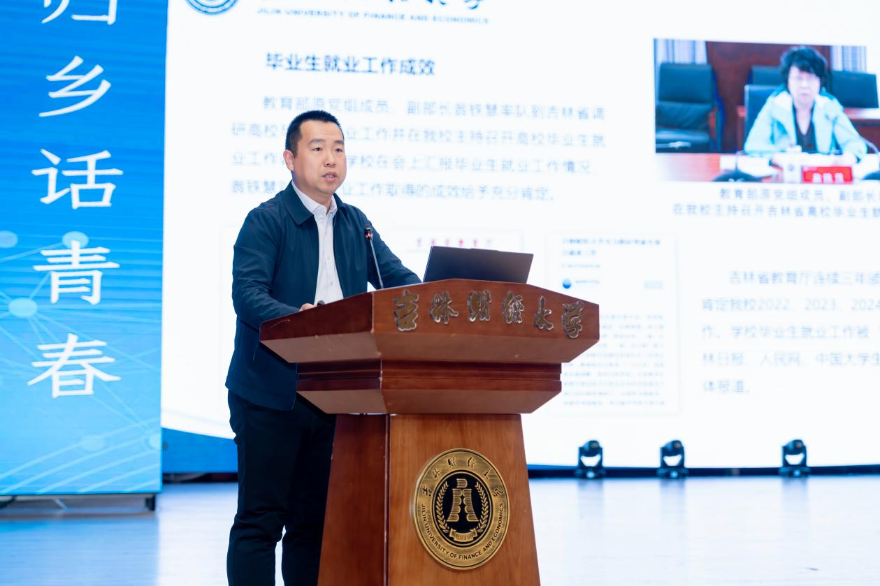 学生工作处副处长遇言介绍学校资助育人工作及奖助学金政策,确保每一位吉财学子都能安心学习、成长成才。