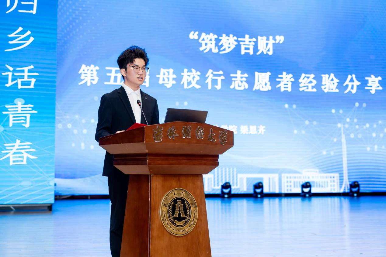 霍志刚回顾了学校自1946年建校以来的红色金融办学底蕴,高度评价了“母校行”活动作为实践育人品牌的重要价值。他向志愿者提出三点希望:传承红色基因讲好吉财故事、践行感恩情怀架好连心桥梁、做好团队协作守牢安全底线,他勉励志愿者们珍惜这次实践机会,在服务中锤炼本领,在实践中增长才干,以优异的表现为学校争光添彩。