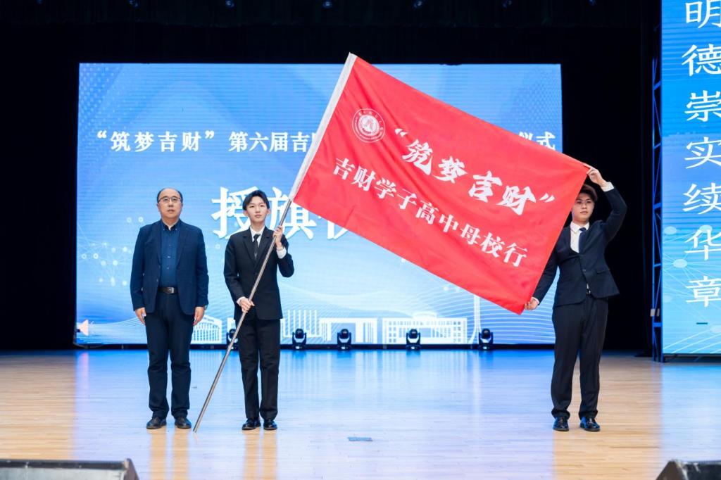 招生就业处处长竭岸扬将“母校行”旗帜授予志愿者代表。这面旗帜承载着深深的责任与使命,点燃了每一位志愿者的服务热情,激励志愿者们用实际行动传递温暖、播撒力量。