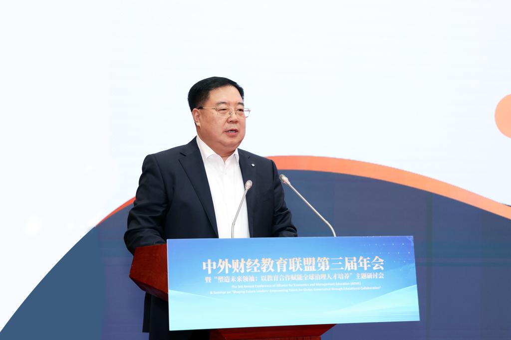 中央财经大学校长马海涛、西南财经大学校长李永强、浙江工商大学校长王永贵、中南财经政法大学副校长刘仁山、对外经济贸易大学副校长陈德球等高校领导分别围绕财经大学高质量发展、深耕国际合作、学科交叉与产教融合以及联盟合力教育赋能等作精彩主旨发言。