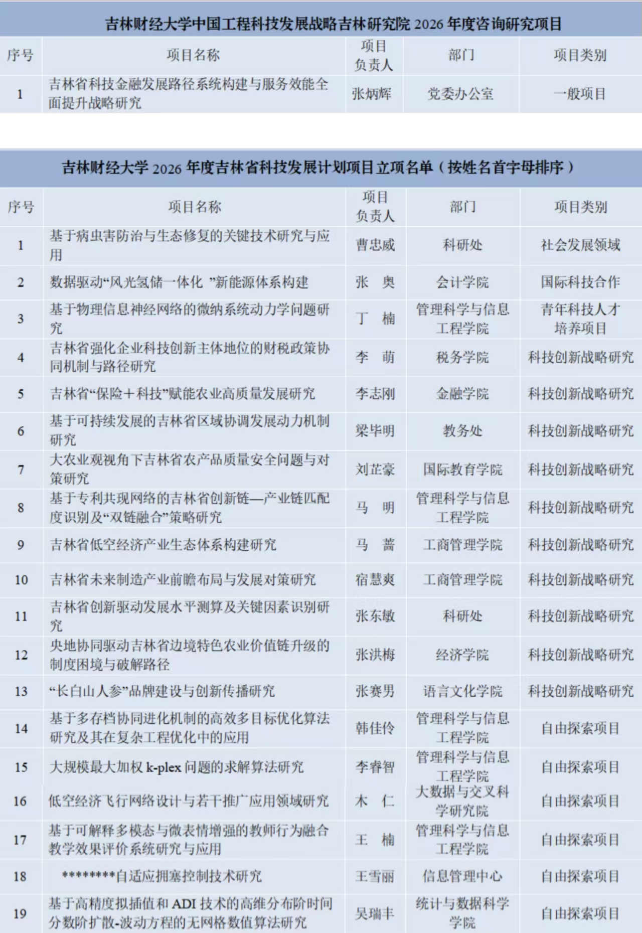 本网讯(科研处 供稿)近日,吉林省科技厅正式公布了2026年度中国工程科技发展战略吉林研究院项目和吉林省科技发展计划项目立项结果。由校党委书记张炳辉牵头申报的中国工程科技发展战略吉林研究院项目成功获批,另外有19项吉林省科技发展计划项目立项,立项总数较上一年度增长46%。其中,科技创新战略研究项目10项,自然科学基金(自由探索项目)6项,社会发展领域项目1项、国际科技合作项目1项,青年科技人才培养项目1项。Beat365在省科技厅社会发展领域类别和国际科技合作类别均为首次获批,自然科学基金(自由探索项目)立项数量显著增加,2026年度获批项目总经费达203万元,实现历史新高。