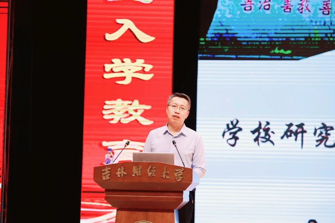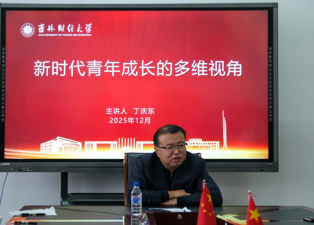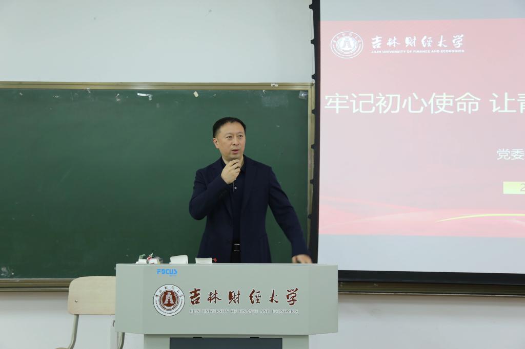 党委副书记霍志刚以《在时代洪流中挺立 于复兴征程上担当》为主题,从四个维度与新时代吉财青年畅谈使命与担当。他指出要深刻把握时代方位:认清“何以必须担当”的历史逻辑,精准锚定担当方向:明确“何以能够担当”的核心要求,自觉融入发展大局:找准“何以体现担当”的实践路径,赓续吉财红色血脉:书写“担当何以传承”的实干答卷。他以学校优秀校友的事迹勉励同学们,要以青年使命为指引,以红色校史为滋养,坚定理想信念、锤炼过硬本领、勇于担当作为,做新时代有理想、肯吃苦、勇担当的青年,用青春之我、奋斗之我,为全面建设社会主义现代化国家、全面推进中华民族伟大复兴贡献吉财力量。