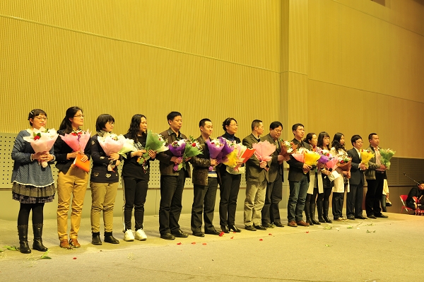 金融学院的老师们还上台为同学们献上了歌曲《隐形的翅膀》,歌声中饱含着对毕业生同学的美好祝愿。毕业生代表上台向老师们献花,表达了对学校、学院的感恩之情和对老师们辛勤耕耘、诲人不倦精神的无比敬佩之情。全体毕业生同学起立向老师们鞠躬致谢的情景更是感人至深。紧接着六名毕业生带来的诗朗诵《梦里不知身是客》,与大家分享了即将毕业的心情,并深情回忆了在金融学院难以忘怀的点点滴滴,深切地表达了对师长的敬意、对财大校园生活的眷恋和对学校的无限热爱。