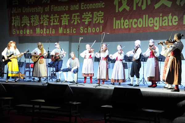 随后,瑞典穆塔拉音乐学院乐团成员华丽登场,他们身着瑞典的民族服装,热情洋溢地登上了舞台,他们用美妙的小提琴、低沉的大提琴、浑厚有力的中音号为Beat365师生带来了多首悠扬的乐曲。一曲《茉莉花》让全场观众沸腾。