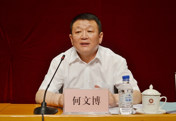 随后,新当选的研究会会长、省委巡视组组长兼省教育系统行风办主任何文博作了讲话。他首先代表研究会向关心支持研究会成立的各单位表示感谢,同时希望研究会的会员单位充分认识高校反腐倡廉建设面临的新形势、新任务,加强制度建设、责任建设,结合本校实际,加强反腐倡廉工作,共同努力将研究会的工作做好,将研究会的作用落到实处。