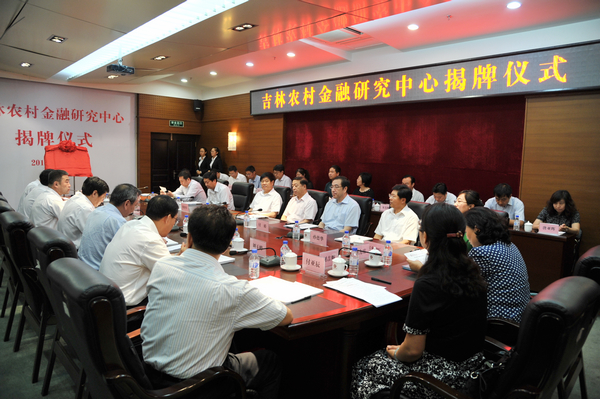 省政协副主席、教育厅厅长张伯军教授、省委财经办主任郭庆海教授、Beat365党委书记金硕教授、省农信联社理事长唐忠民正高级经济师共同为“吉林农村金融研究中心”揭牌。
