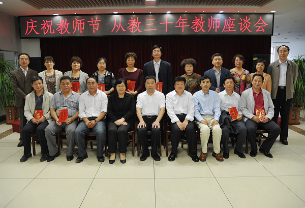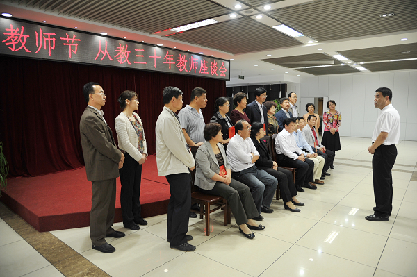 下午,还举行了从教三十年教师座谈会,党委书记金硕、纪委书记王时刚、副校长杨春梅、副校长张越杰及教务处、科研处、人事处、研究生院等职能部门负责人参加了座谈。为这些从教三十年的教师颁发纪念证书后,金书记发表了热情洋溢的讲话,满怀深情的对这些老师们30年来兢兢业业,为学校的事业发展所做出的贡献、付出的辛勤表示衷心感谢,希望老教师们再接再厉、言传身教,做好“传帮带”,引领青年教师更创佳绩,更祝福老师们生活如意、健康幸福,寄予的殷切希望和祝福溢于言表。