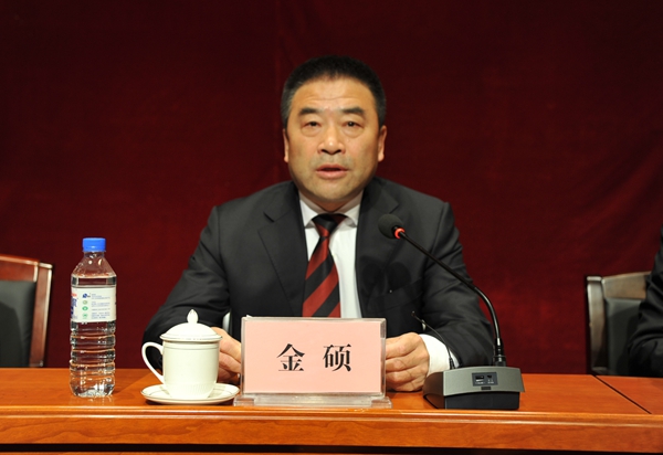金硕在讲话中表示,坚决拥护省委的决定,感谢省委组织部、省高校工委多年来给予的关怀、支持和帮助。随后,他深情地回顾了在学校的工作经历,11年来,自己与财大人一起共同奋斗,在竞争中生存,在挑战中成长,在探索中前进,全校领导班子和教职工同心同德,同舟共济,同肩担当,自己能亲身参与和见证这段财大大发展、大跨越的历史进程,并为此贡献绵薄之力,感到非常荣幸。在财大工作期间,学校加强党的领导,抓好思想建设,党建工作取得了显著成绩;抓住重要机遇期,完成了新校区建设;咬住教育转型重要关节点,学科建设、师资队伍、整体学术实力持续提升;顺应了教育改革发展大势,创新了学校人事干部任用机制、学术领军人物培养引进机制、学术成果培育机制,形成了富有财大特色的管理体系;获得了省重点大学的殊荣;创造了本科教学评估的佳绩;实现了更名大学的理想夙愿。他感谢上级组织、学校领导班子成员、全校教职员工多年来的支持,衷心祝愿学校在新任领导班子的带领下,取得更大的成绩,各项事业越来越好、越来越辉煌。