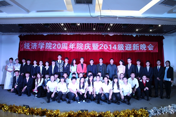 本讯网(学生记者 王月 王丹凤) 2014年,时值经济学院建院20周年,为庆祝经济学院20周年华诞及对2014级新同学的欢迎,在学院党政的指导下,学院党总支副书记赵彦双、团委书记骆鑫带领团委、学生会组织策划了“经济学院20周年院庆暨2014级迎新晚会”。
